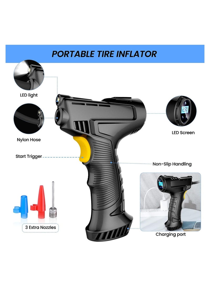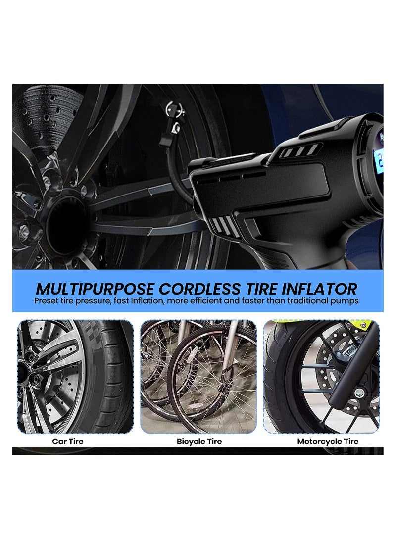 With its 120W powerful motor and metal cylinder construction, this inflator ensures fast, stable performance and efficient heat dissipation, reducing both heat buildup and operational noise. It’s ideal for inflating car tires, bicycles, motorcycles, sports balls, and inflatables.