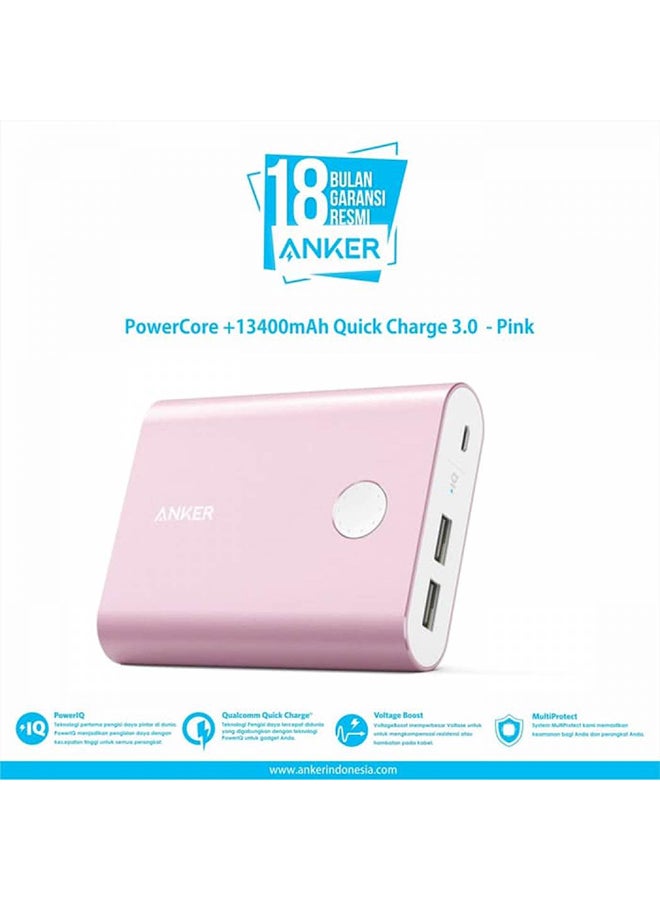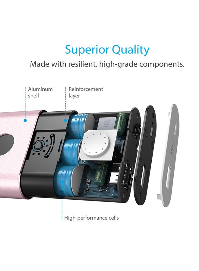 يتميز الباور بانك من أنكر بتقنية كويك تشارج 3.0 المتقدمة من كوالكوم والمعروفة باسم باور كور بلس باور بنك محمول يضمن شحناً سريعاً لهاتفك الذكي. لا تدع بطارية هاتفك الذكي تنفد أبداً مع باور بنك باور كور بلس من أنكر سعة 13400 مللي أمبير في الساعة بتقنية كويك تشارج 3.0. يتميز الباور بنك بسعة عالية للغاية مما يتيح لك شحن هاتف أبل آيفون 7 4.5 مرة أو هاتف سامسونج جالاكسي S6 أكثر من 3 مرات. هذا الشاحن المحمول مناسب أيضاً لشحن جهاز أبل آي باد إير 2. يتميز بتقنية كوالكوم كويك تشارج 3.0 المعروفة باسم باور كور بلس ويضمن هذا الباور بنك شحن جميع الأجهزة المتوافقة بشكل أسرع بنسبة 85% يتيح الشحن السريع للأجهزة التي لا تتوافق مع تقنية كويك تشارج، ويتميز الباور بنك بتقنية فولتيج بوست وباور آي كيو. تم تصميم الباور بنك بمكونات عالية الجودة ويتميز بهيكل مصنوع من خليط الألومنيوم لضمان المتانة. أقصى سرعة شحن: 2.4 أمبير