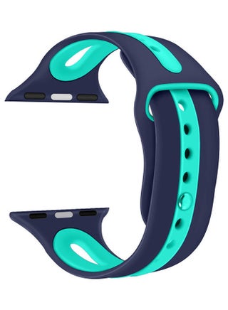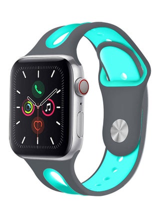 سوار ساعة برومايت من السيليكون، ساعة أبل رياضية مطاطية ناعمة بلونين، مقاومة للعرق، سوار بديل مقاوم للعرق مقاس 38 مم/40 مم مع دبوس قابل للتعديل وإغلاق بثنية لساعة أبل ووتش سيريز 1/2/3/4/5 مقاس متوسط/ كبير، هيبستر-38 مل فيروزي/ رمادي