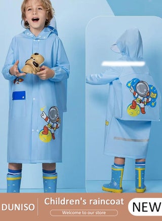 معطف واق من المطر للأطفال محمول من أسيتات إيثيلين-فاينيل (EVA) مع غطاء حقيبة معطف مطر قابل لإعادة الاستخدام مع غطاء رأس وأكمام لركوب الدراجات والسفر والصيد والمشي لمسافات طويلة والتخييم L