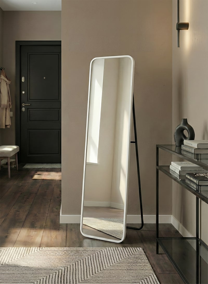 مرآة كاملة الطول بإطار من الألومنيوم وحامل معدني تتميز بتصميم أنيق ومتين يناسب مختلف المساحات في المنزل مثل غرفة المعيشة، وغرفة النوم، وغرفة الملابس، والممرات، وحتى الحمام. تمنحك هذه المرآة انعكاسًا واضحًا وشاملًا للجسم من الرأس حتى القدمين، ما يجعلها مثالية للاستخدام اليومي عند اختيار الملابس، أو تصفيف الشعر، أو التحقق من المظهر العام قبل الخروج. الإطار المصنوع من الألومنيوم عالي الجودة مقاوم للصدأ والتآكل، مما يضمن ثباتًا واستدامة طويلة الأمد حتى مع الاستخدام المتكرر. تأتي بخيارات تركيب متعددة تتيح لك تعليقها على الحائط بشكل رأسي أو أفقي، أو استخدامها كمرآة أرضية بفضل الحامل المعدني القوي المصمم على شكل حرف U، مما يجعلها مناسبة للمساحات الكبيرة أو الصغيرة. تتميز بلون عصري ينسجم بسلاسة مع مختلف انماط الديكور مما يجعلها إضافة عملية وجذابة لأي غرفة. تصلح كذلك للاستخدام في المساحات التجارية مثل صالونات التجميل أو محلات الأزياء، حيث توفر رؤية واضحة وشاملة للمظهر.