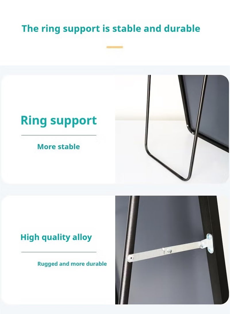 مرآة كاملة الطول بإطار من الألومنيوم وحامل معدني تتميز بتصميم أنيق ومتين يناسب مختلف المساحات في المنزل مثل غرفة المعيشة، وغرفة النوم، وغرفة الملابس، والممرات، وحتى الحمام. تمنحك هذه المرآة انعكاسًا واضحًا وشاملًا للجسم من الرأس حتى القدمين، ما يجعلها مثالية للاستخدام اليومي عند اختيار الملابس، أو تصفيف الشعر، أو التحقق من المظهر العام قبل الخروج. الإطار المصنوع من الألومنيوم عالي الجودة مقاوم للصدأ والتآكل، مما يضمن ثباتًا واستدامة طويلة الأمد حتى مع الاستخدام المتكرر. تأتي بخيارات تركيب متعددة تتيح لك تعليقها على الحائط بشكل رأسي أو أفقي، أو استخدامها كمرآة أرضية بفضل الحامل المعدني القوي المصمم على شكل حرف U، مما يجعلها مناسبة للمساحات الكبيرة أو الصغيرة. تتميز بلون عصري ينسجم بسلاسة مع مختلف انماط الديكور مما يجعلها إضافة عملية وجذابة لأي غرفة. تصلح كذلك للاستخدام في المساحات التجارية مثل صالونات التجميل أو محلات الأزياء، حيث توفر رؤية واضحة وشاملة للمظهر.