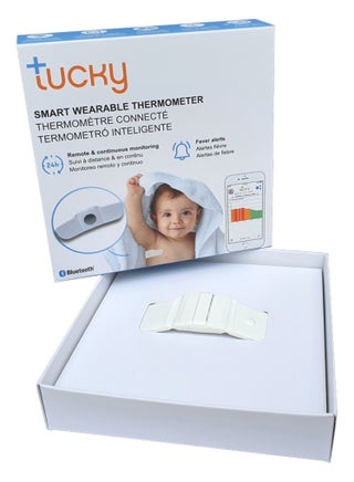 يمكن استخدام مقياس الحرارة الذكي الخاص به لمراقبة تطور الحمى عن بُعد. ميزان الحرارة Tucky الذكي القابل للارتداء للأطفال والرضع سهل التركيب. يتم وضعه تحت إبط الطفل باستخدام مواد لاصقة مزدوجة الوجه هيبوالرجينيك. يقيس درجة الحرارة باستمرار دون إزعاج الطفل. يتم نقل البيانات إلى الهاتف الذكي عبر البلوتوث. كما أنه يراقب وضع نوم الأطفال حديثي الولادة ويرسل تنبيهًا إذا انقلبت. المتابعة المستمرة لدرجة الحرارة يمكنك مراقبة حمى طفلك وفعالية الدواء. الوصول عن بعد إلى البيانات في المربية أو في الغرفة المجاورة لك: اتبع تطور درجة الحرارة. غير ضار للطفل مع مواده المتوافقة حيويًا والمضادة للحساسية ، لا يوجد خطر الإصابة بالحساسية. بالإضافة إلى ذلك ، تصدر Tucky 0.05٪ فقط من الوقت. قوة النقل أقل بـ 250 مرة من تلك الخاصة بجهاز مراقبة الأطفال الكلاسيكي. محتويات الصندوق 1 مقياس حرارة Tucky patch 5 مواد لاصقة على الوجهين 1 كابل شحن USB 1 دليل التعليمات