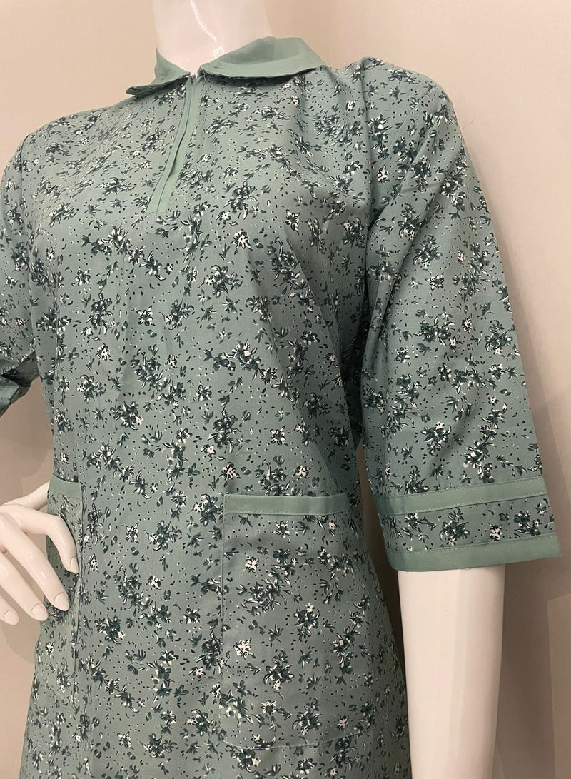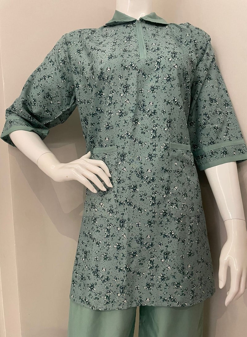 زي عاملة مريح و جيد التهوية، القماش: ناعم على البشرة، مزيج من نسيج عالي الجودة من القطن والبوليستر. مناسب للعاملات المنزلية، بنصف كم، سحاب أمامي ، جيوب اماميه متعددة الاستخدامات. البنطلون بقصة مريحة مرونة كاملة تناسب طبيعة العمل.