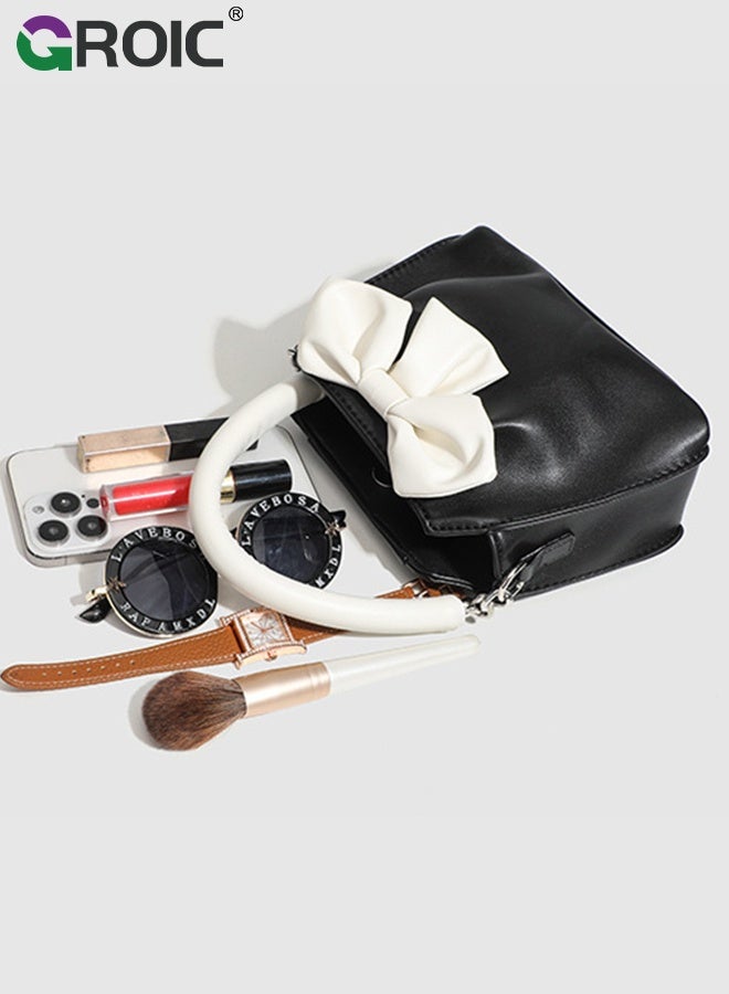 FEATURES: The handbag for women features a large white bow decoration and a magnetic snap closure. The bow design makes the handbag more elegant and cute. The snap closure keeps the handbag securely closed.
