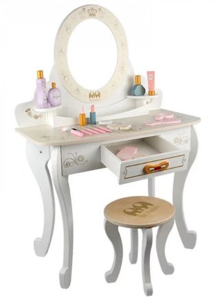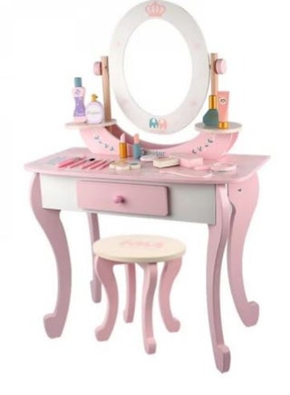 *مجموعة مكياج محاكية؟ لعبة المكياج المحاكاة هذه مجهزة أيضًا بالكثير من الملحقات، وهي مثيرة للاهتمام للغاية للفتيات الصغيرات لتجربة المكياج بأنفسهن. *تصميم نماذج محاكاة للملحقات يمكن أن يمنح الأطفال أيضًا أكثر واقعية *مادة آمنة وإطار قوي: مجموعة طاولة المكياج للفتيات الصغيرات متينة. *مصنوعة من لوح قوي ومتين للغاية وخشب صلب، مجموعة أدوات الزينة الخاصة بنا قوية بما فيه الكفاية وستوفر خدمة طويلة الأمد. *مجموعة طاولة متعددة الوظائف: تتضمن درجًا لتوفير مساحة كبيرة للماكياج والفرش والألعاب للحصول على حل أنيق لاحتياجات تخزين طفلك. *لا يمكنها فقط الحفاظ على كل شيء منظمًا ولكن أيضًا تساعد الأطفال على تكوين عادة جيدة للتنظيم. هدية مثالية للأطفال: كل فتاة لديها حلم أميرة لوضع المكياج *مجموعة طاولة الزينة للبنات مع المرآة هي هدية مثالية للأطفال لتحقيق حلم طفلتك الصغيرة في أن تكون أميرة جميلة. *إنه المنتج المثالي لغرفة الفتيات. *سهلة التجميع والتنظيف: طاولة الزينة للفتيات الصغيرات سهلة التركيب للغاية من قبل شخص بالغ. *السطح أملس للغاية بحيث يمكن مسحه بسهولة بقطعة قماش مبللة.