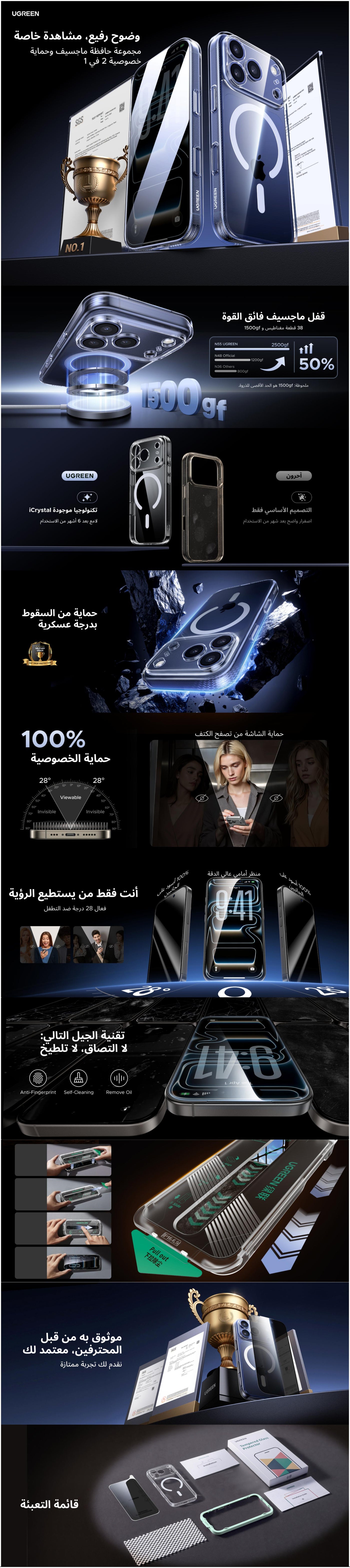 | محتويات العلبة | 1* iPhone 17 Pro Max Magnetic Case, 1* iPhone 17 Pro Max Privacy Protector, 24-month warranty |