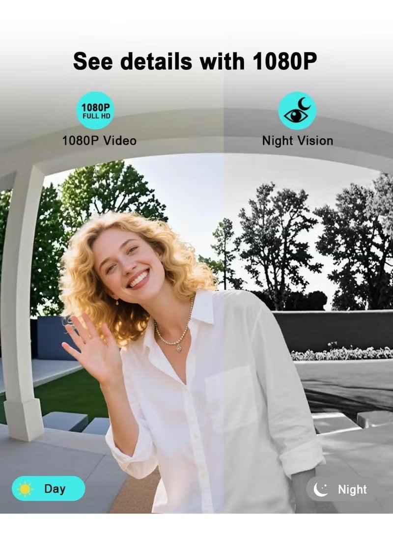 [ Night Vision ] The video doorbell are equipped with infrared lights and smart sensors to ensure superior video quality, even in dim light, for round-the-clock security.