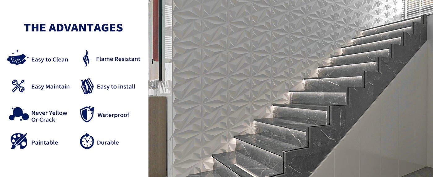 If you're seeking an escape from the mundane flatness of traditional walls, consider the creative potential of 3D wall panels. With their mesmerizing Diamond design in a radiant white shade, you can craft an artistic and distinctive personal space that resonates with modern aesthetics.