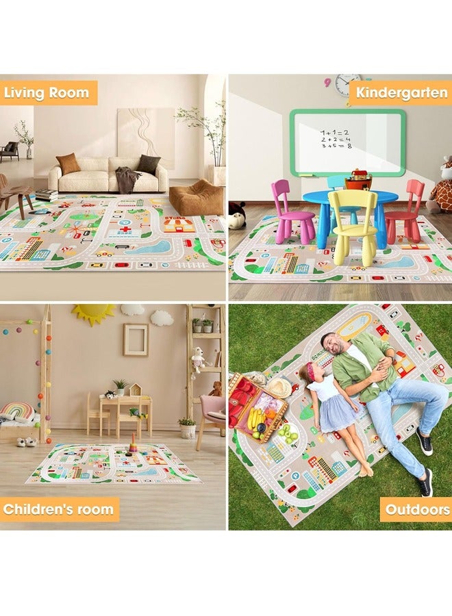 【Large SIZE】Large Size City Life Kids car rug is perfect for baby's playing, moving, crawling, and tummy time, Don't worry about the kids catching a cold when crawling on the cold floor. This kid's playmat is foldable and light to carry, perfect for playrooms, bedrooms, living rooms, etc.