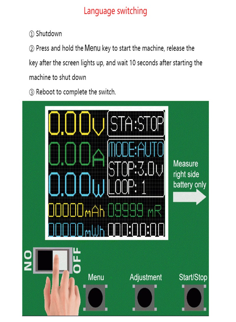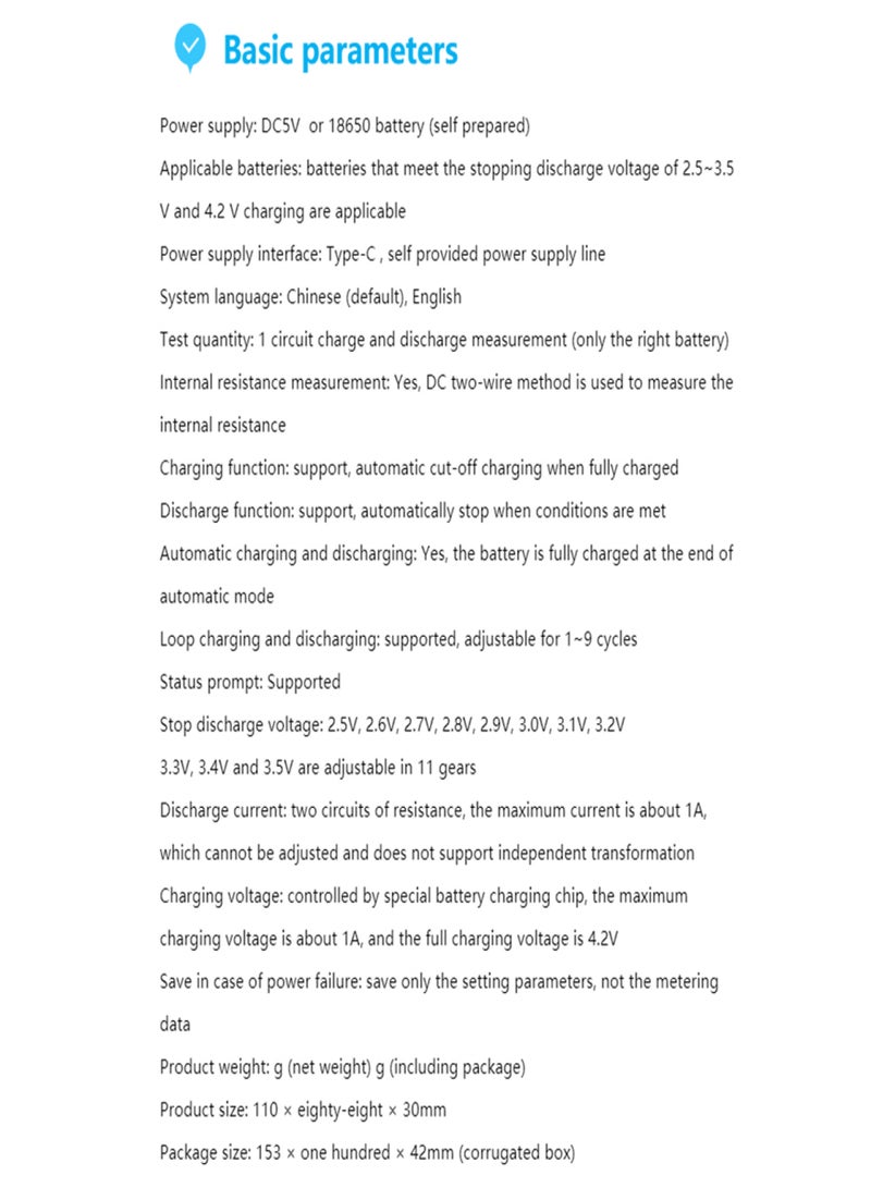 Stops discharge voltage: 2.5V, 2.6V, 2.7V, 2.8V, 2.9V, 3.0V, 3.1V, 3.2V, 3.3V, 3.4V, 3.5V, 11 levels adjustable