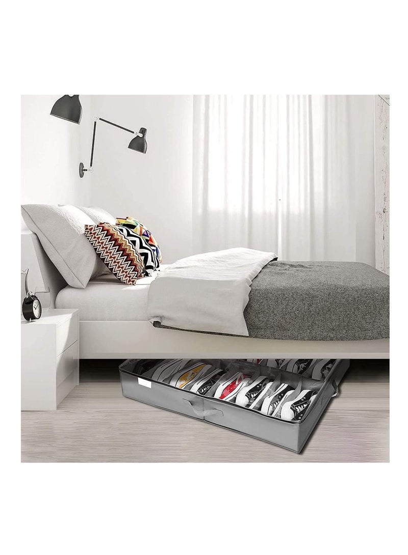 2 pieces Under Bed Shoe Storage Organizer,TEAR-RESISTANT Heavy Duty 600D Material,Shoe Organizer Under Bed,Fits Men's and Women's Shoes, High Heels, and Sneakers,Up to 12 Pairs (Light Grey)