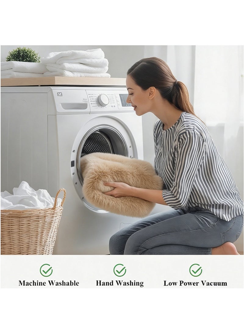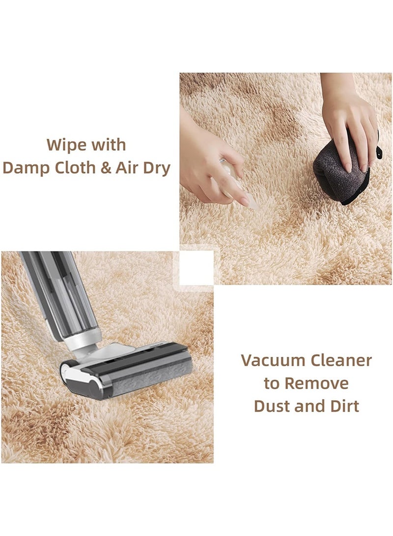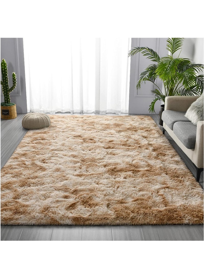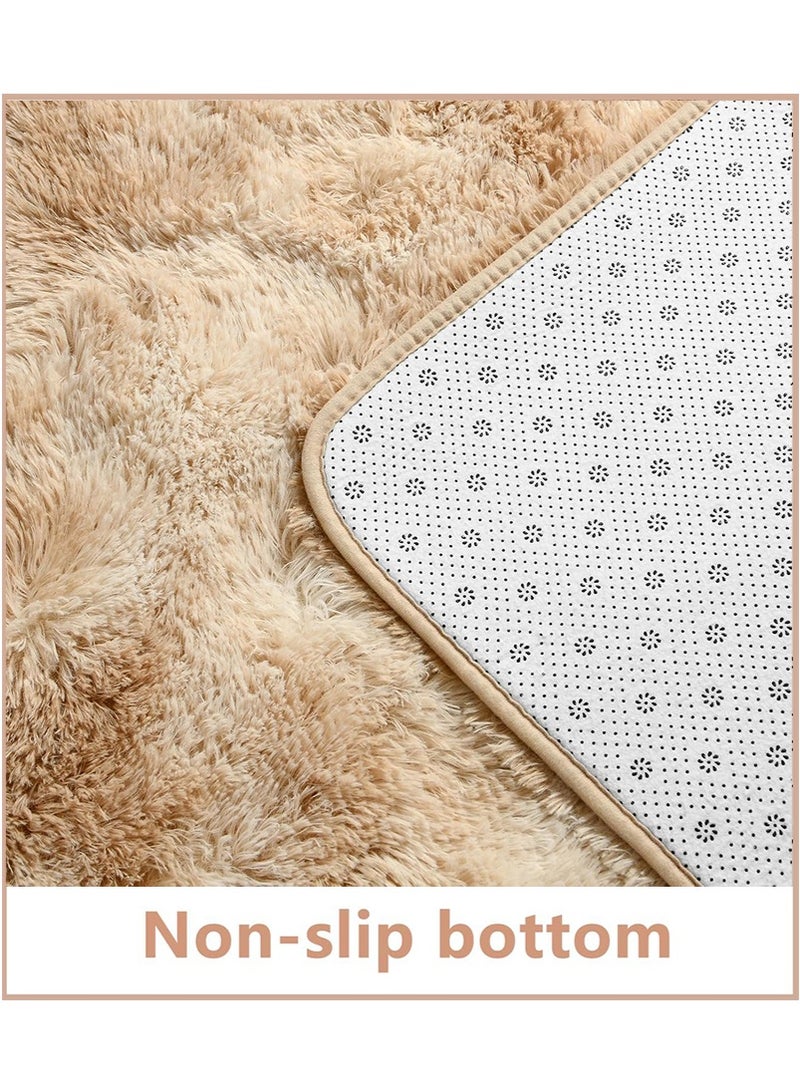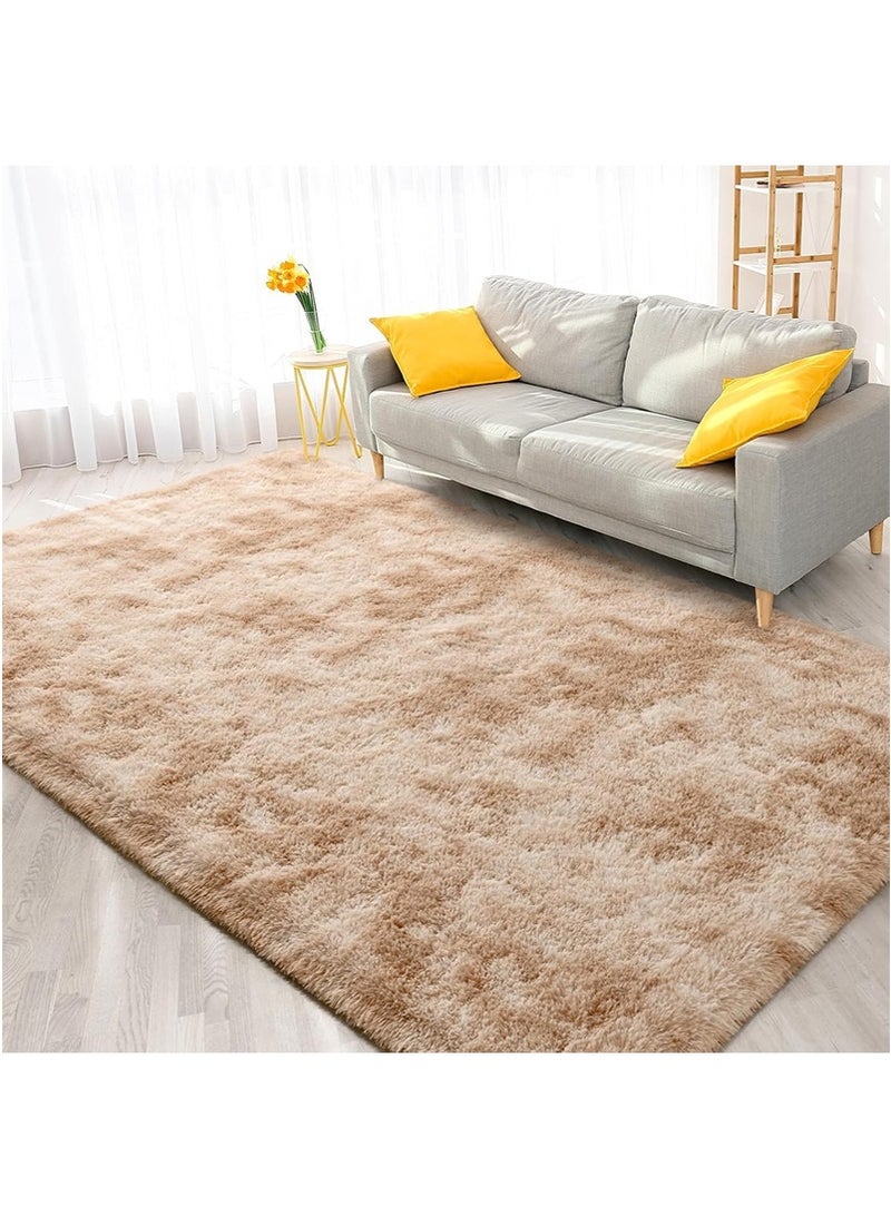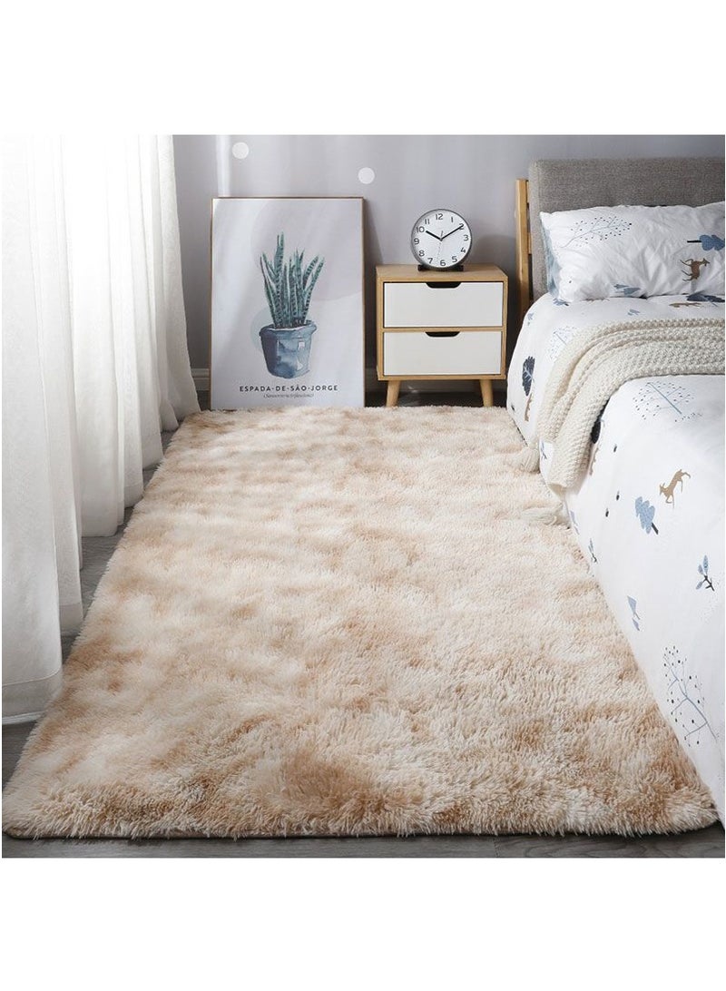 200x300cm Large Plush Area Rug for Bedroom Bedside Living Room, Washable Carpet Mat for Sofa Coffee Table, Bedside Non-Slip Plush Floor Mat, Bay Window Long Furry Carpet (Khaki)