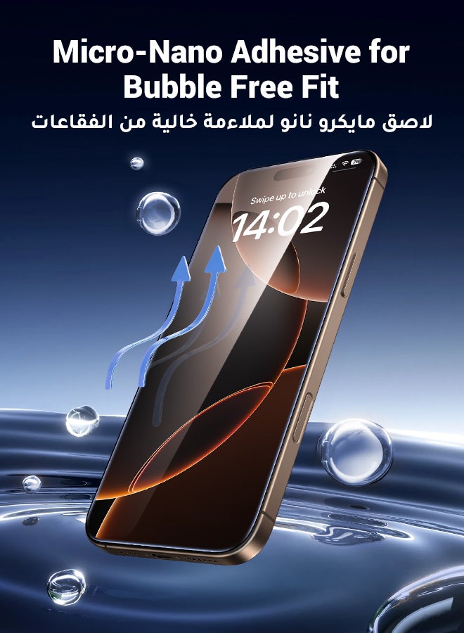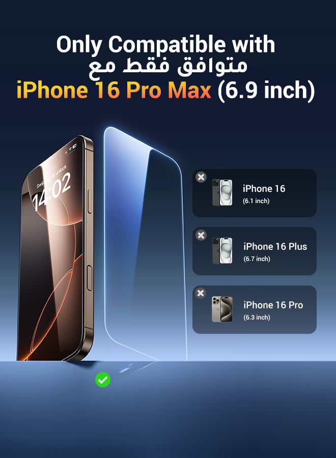 2Pack iPhone 16 Pro Max Screen Protector 6.9 Inch HD Easy Installation, Military-Grade Protection, Scratch Resistant, Anti-Fingerprint, Bubble Free, Case Friendly, 9H Tempered Glass Film