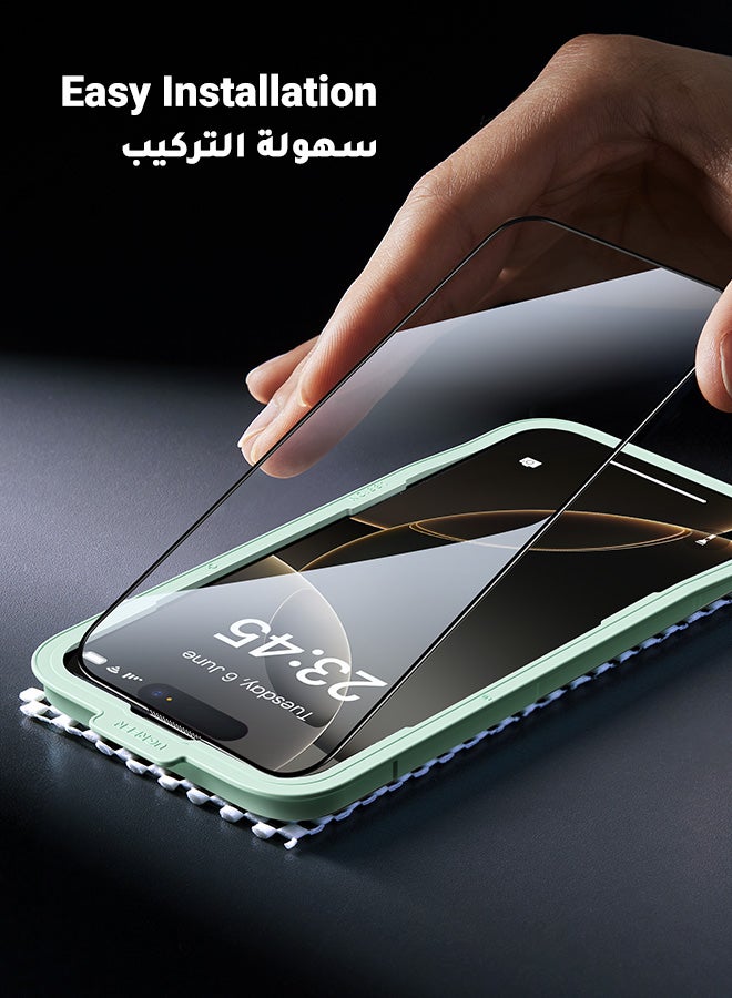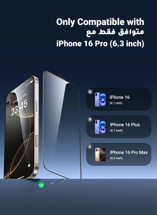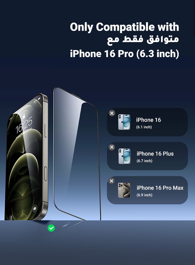 2Pack iPhone 16 Pro Screen Protector Full Coverage 6.3 Inch HD Easy Installation Frame Military-Grade Protection Scratch Resistant Anti-Fingerprint Bubble Free 9H Tempered Glass Film