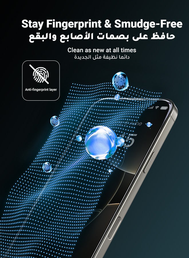 【Anti-Fingerprint】With the Oleophobic Coating on the surface, the iPhone 16 Pro Glass Protector will effectively reduce fingerprints and smudges, making the screen very easy to clean.