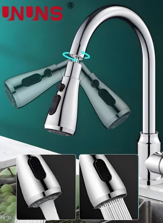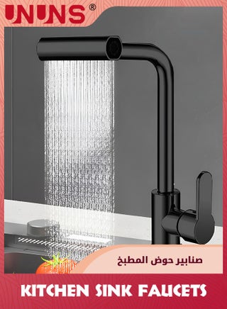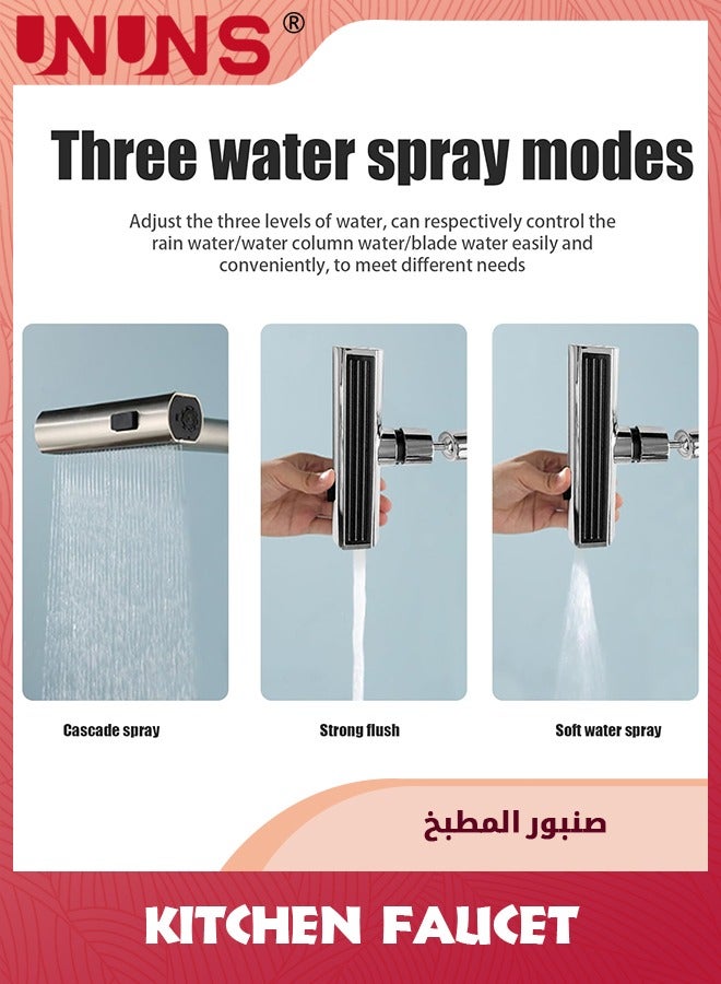 3-In-1 Waterfall Kitchen Faucet,360° Swivel Metal Bathroom Kitchen Faucets Universal Swivel Faucet Head Replacement Modern Design Sink Taps Mixer For Kitchen