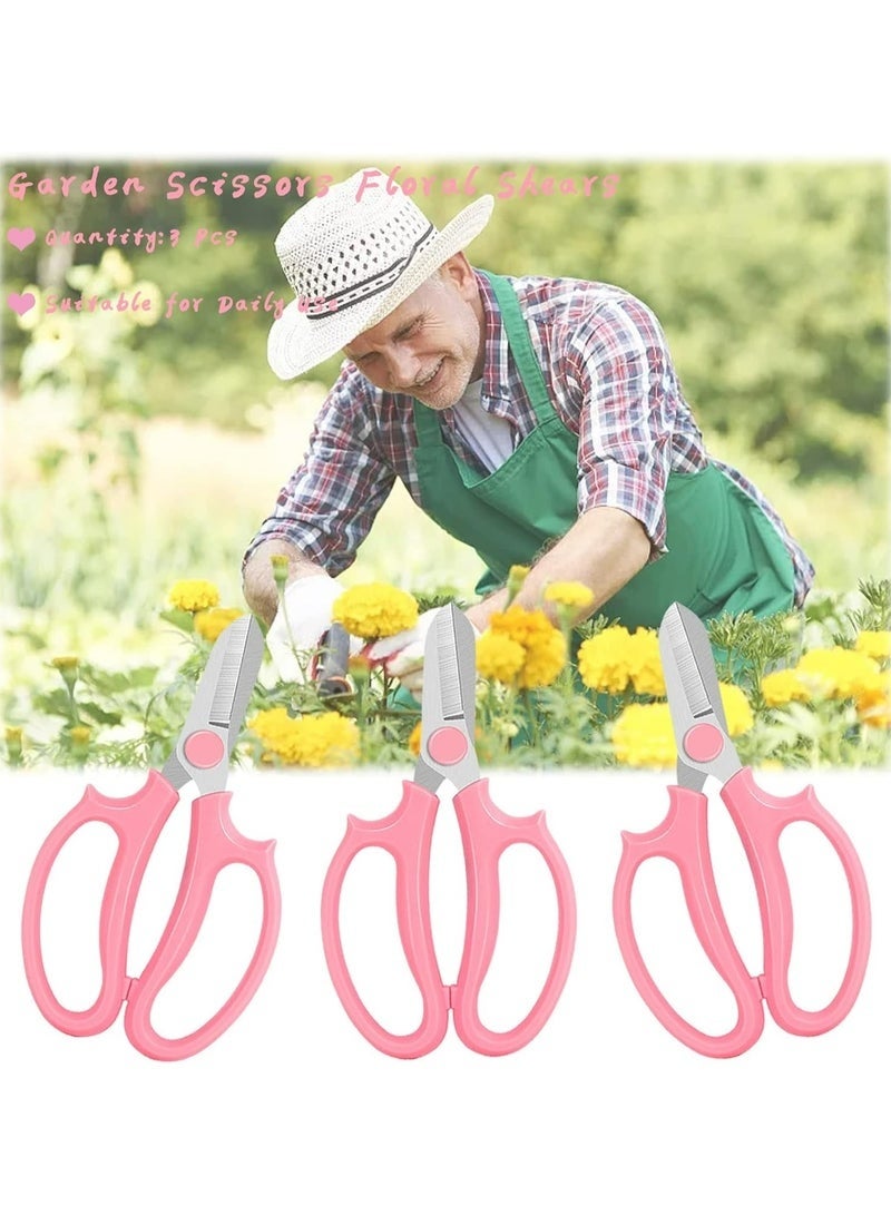 3 Pack Professional Garden Scissors, for Plant Trimming and Fruit Picking, Pink
