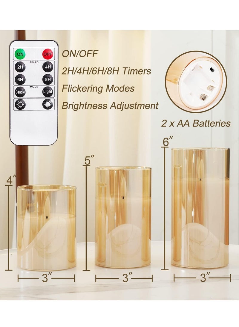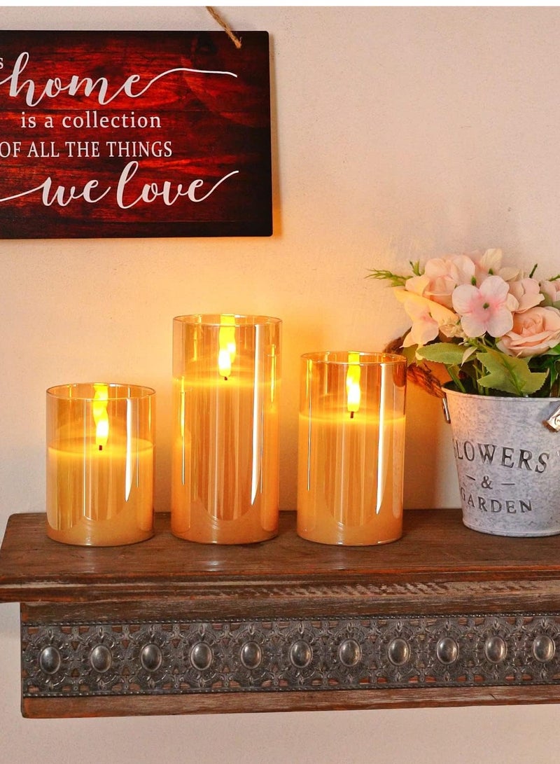 3 Piece LED Flameless Candle Set, Gold,Battery Operated LED Pillar Candles with Remote Control and Timer, Radiance Candles
