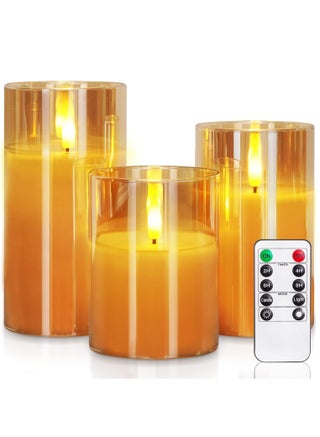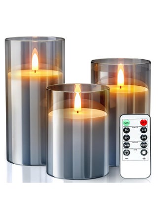 Package Includes: The flameless candle set includes 3 LED candles(D3”xH4”5”6”), a remote control and an user manual. Each battery operated candle is powered by 2 AA batteries(not included) that last 500+ hours.