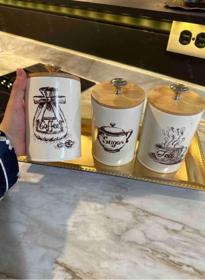 | What's In The Box | 3pcs Tea, sugar and coffee jars |