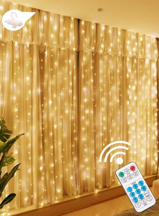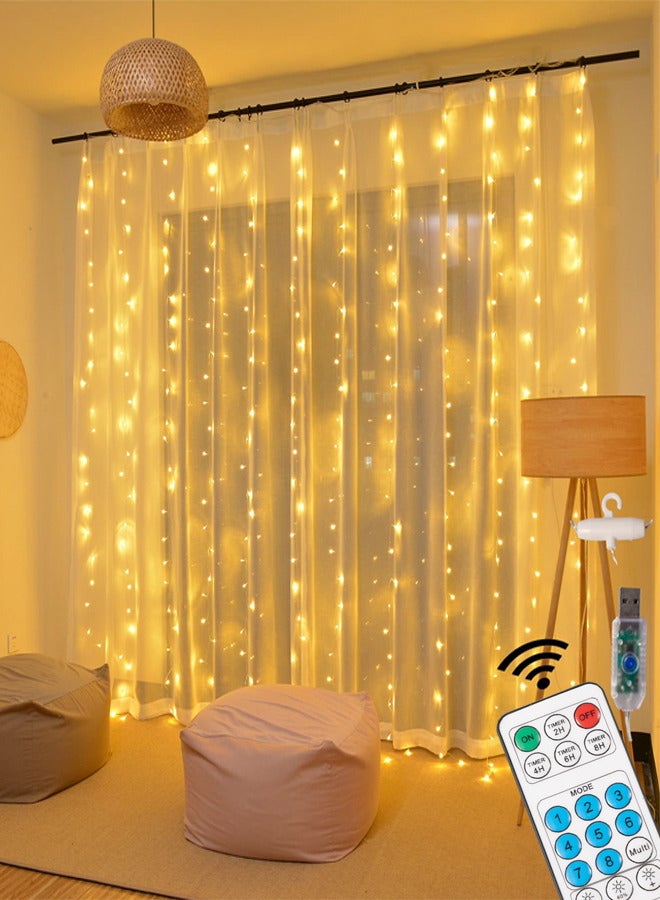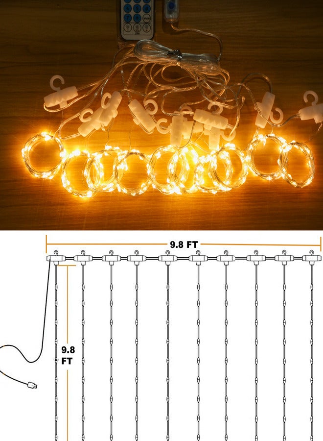 300LED Fairy Curtain Lights, USB Plug in 8 Modes Fairy String Lights with Remote Controller for Bedroom, Indoor, Outdoor, Weddings, Party, Decorations(9.8x9.8Ft, Warm White)