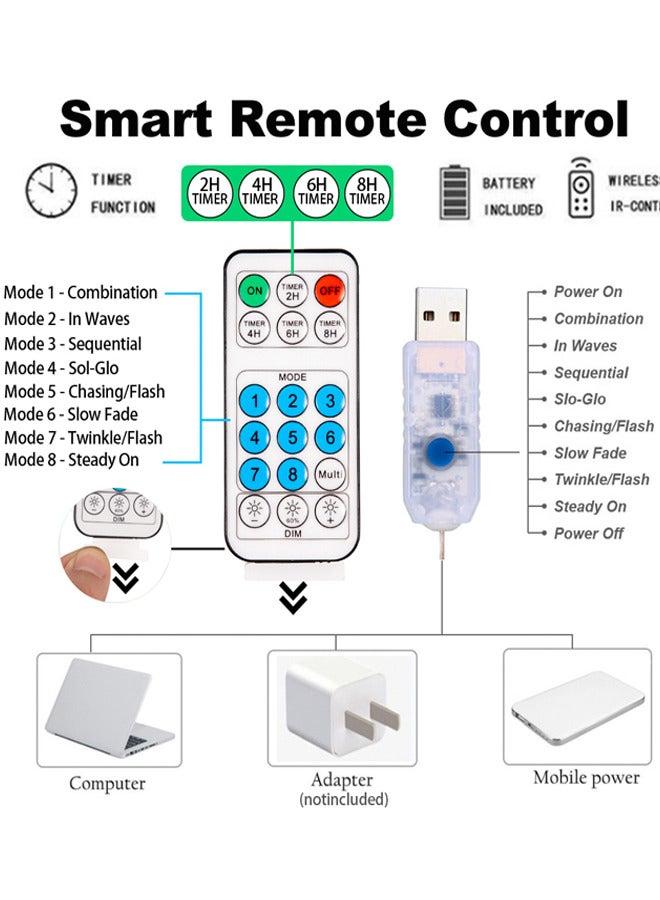 【USB Powered】: Plug in with USB charger,Suitable for more places to get powered even in camping or barbecue .Or Powered by power bank, laptop, cellphone adapter and more.Start and enjoy the curtain lights anywhere you love.
