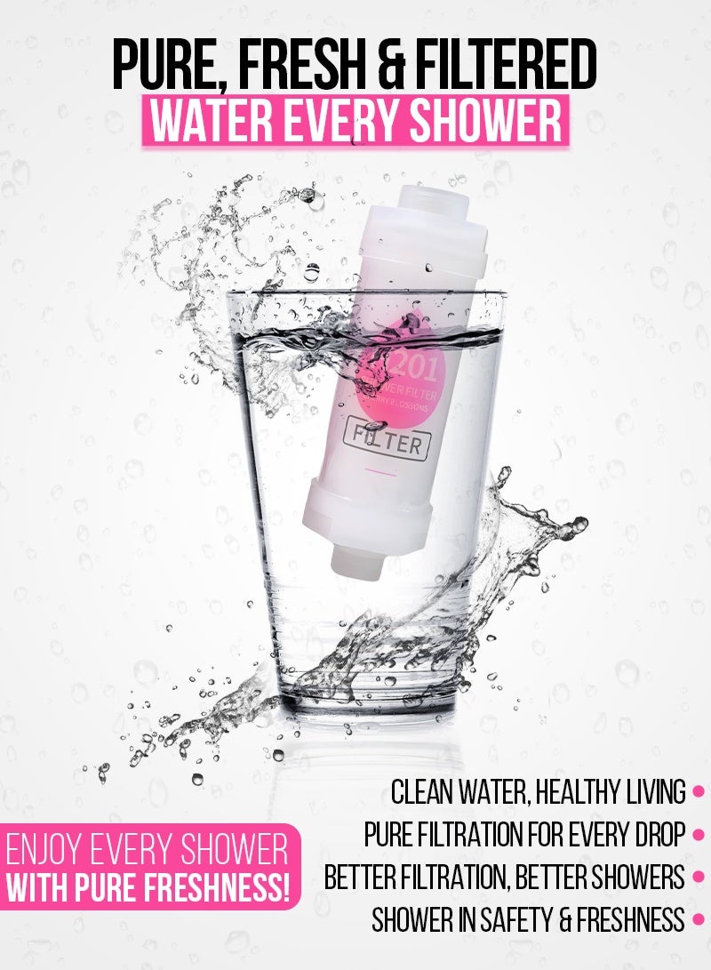 Immerse yourself in the delightful, fruity-floral fragrances of Cherry, Strawberry, Cherry Blossom, and Honey Peach, releasing a refreshing aroma that uplifts the mind and soothes the skin. Perfect for those dealing with dryness, itchy skin, or hair breakage, this filter softens hard water to protect your skin’s natural moisture balance and promote healthier, shinier hair.