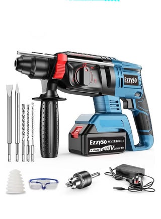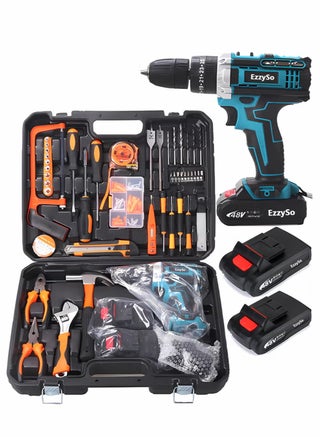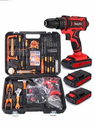 Powerful 3/8 Cordless Drill Kit is powered by a 48V Max, 1.5Ah Lithium-ion battery for powerful, stable and long-lasting operation. A fully charged battery can last up to 18 months. Speed settings are 0-1850 RPM for a variety of fastening and drilling applications. 25 Torque Adjustable Keyless Chuck Powerful built-in 48V Max motor that delivers 186 pounds of force. The variable speed drill features a 25 torque position clutch for more precise torque adjustment as needed. The large 3/8 (10mm) keyless chuck provides you with excellent bit retention. Use it to enjoy and get more work done than you expected. Comfortable and Easy to Use. The ergonomic soft grip increases comfort and control over the tool without severe fatigue during use. The cordless drill comes with a built-in LED light for extra safety when working in dark areas; there is also a battery indicator on the device housing to easily see the remaining battery power. There is a magnetic holder function on the side, which is very convenient for switching/fixing commonly used drill bits. The compact and lightweight design of the compact drill bit kit fits into small areas, allowing users to easily perform drilling/driving projects in limited spaces. The electric drill kit with lithium ion and charger is ideal for drilling and fastening various materials such as wood and plastic at home. Included components 1x48V MAX cordless drill, 2x lithium ion batteries, 1x charger, 9x socket wrenches, 3x torque drill bits, 3xbradPoint drill bits, 6x screwdriver bits, 1x flexible shaft driver, 1x user manual, 1x drill bit kit carrying case, your experience is our highest pursuit!