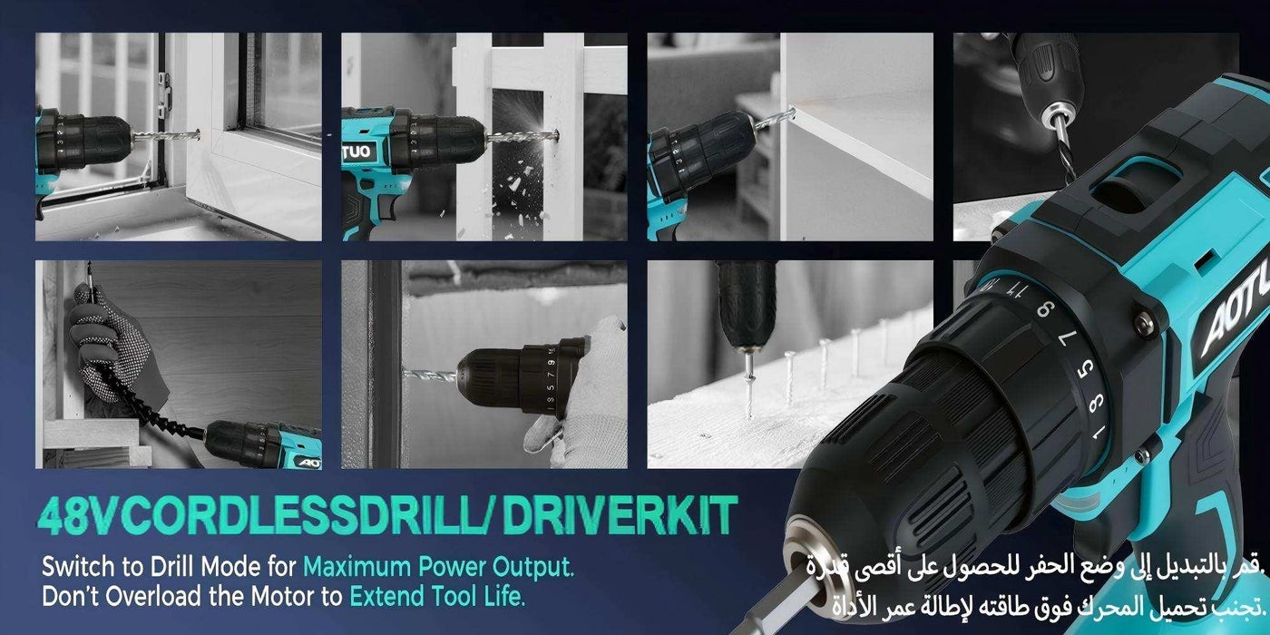 Higher voltage means greater torque and rotational strength to overcome resistance. This 2-speed rechargeable electric drill is equipped with an adjustable clutch, providing you with the versatility to drill different materials and use various drill bits. Low speed is used to drive the screw, and high speed is used for drilling. The 25-torque setting power drill can provide more precise torque or speed adjustment as needed, which helps prevent the screw from sinking too deep, peeling off the screw head or even breaking the screw shaft. This wireless drill kit is perfect for DIY making or professional use in a home garden or construction site.