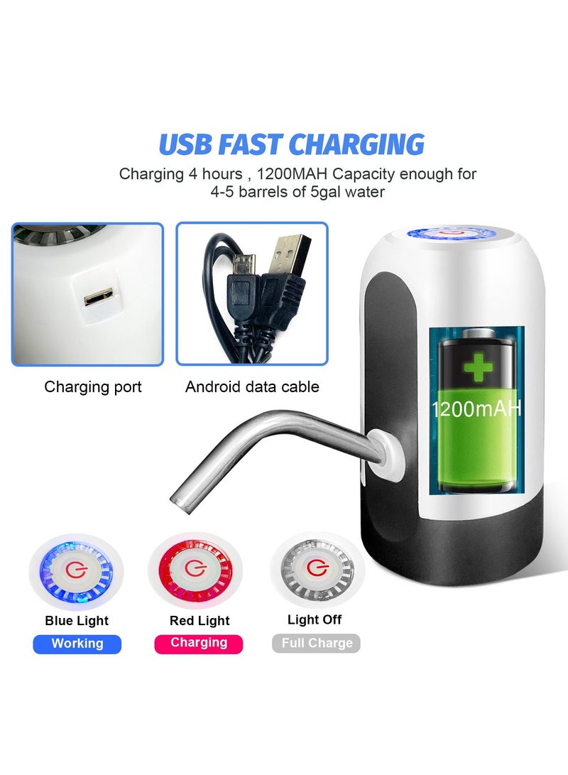 It has a built-in rechargeable battery that can be used for 30–40 days, or around 4-5 5 gallon water bottles once fully charged. It can work anywhere you want. This long-lasting battery will make your life so much easier.