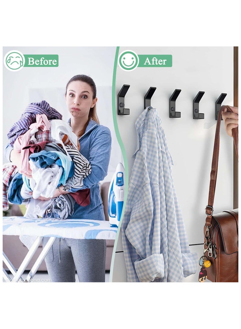 5 Pack Coat Hooks for Hanging, Heavy Duty Hat and Coat Hanger with Fixing Screws, Dual Wall-Mounted Hooks for Clothes, Robes, Towels, Ideal for Door, Bathroom, Bedroom (Black)
