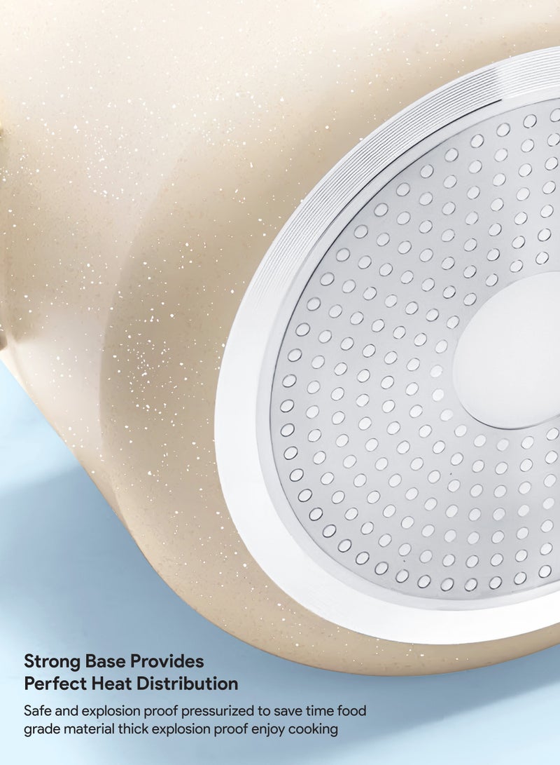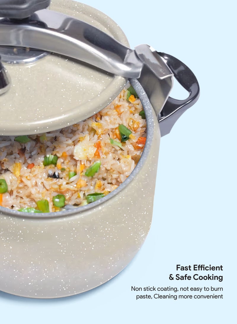 Designed with safety and ease in mind, this cooker features a reliable safety locking mechanism that ensures the lid stays securely in place during operation. The long-lasting rubber sealing ring provides an airtight seal to build the right pressure, delivering consistent results every time. The strong base offers excellent heat distribution, preventing food from sticking or burning and making it compatible with a variety of stovetops, including gas and electric.