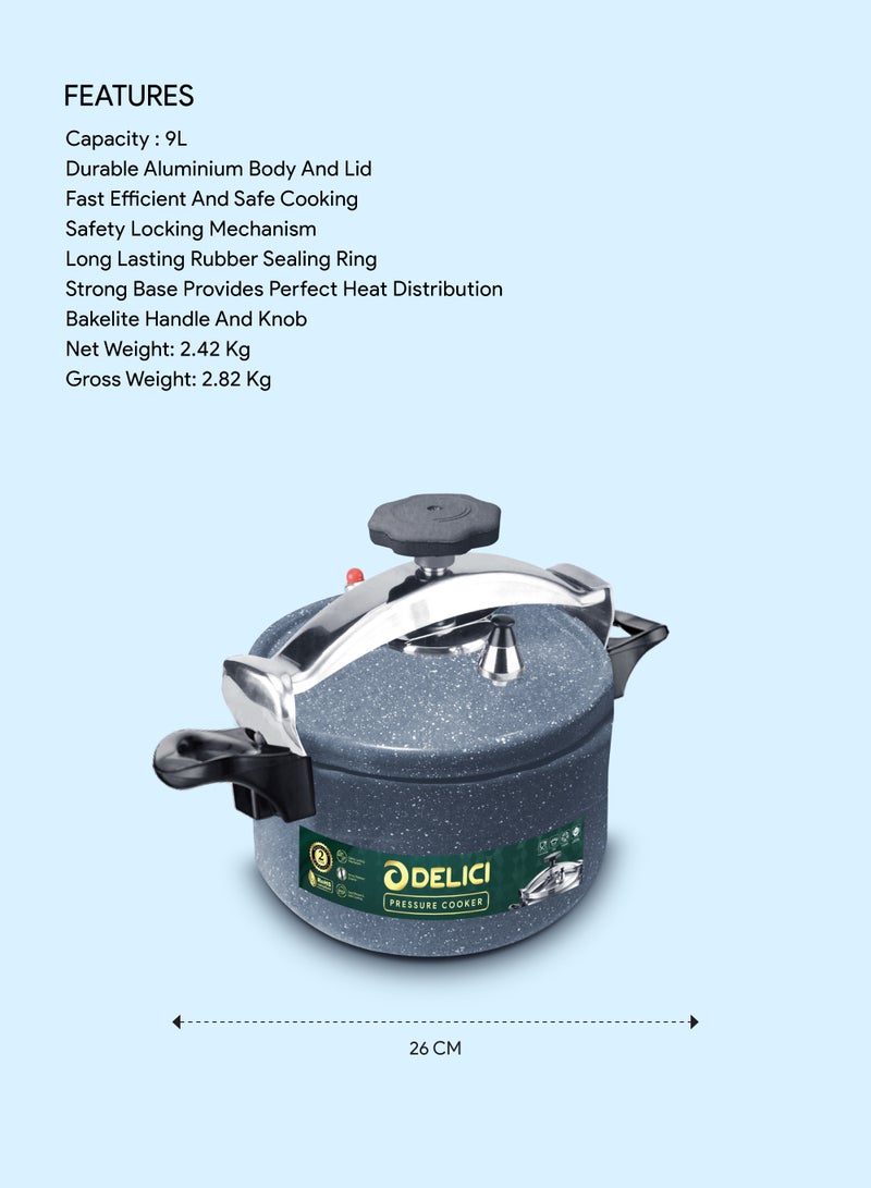 | Model Name | DELICI 9L Aluminium Pressure Cooker |