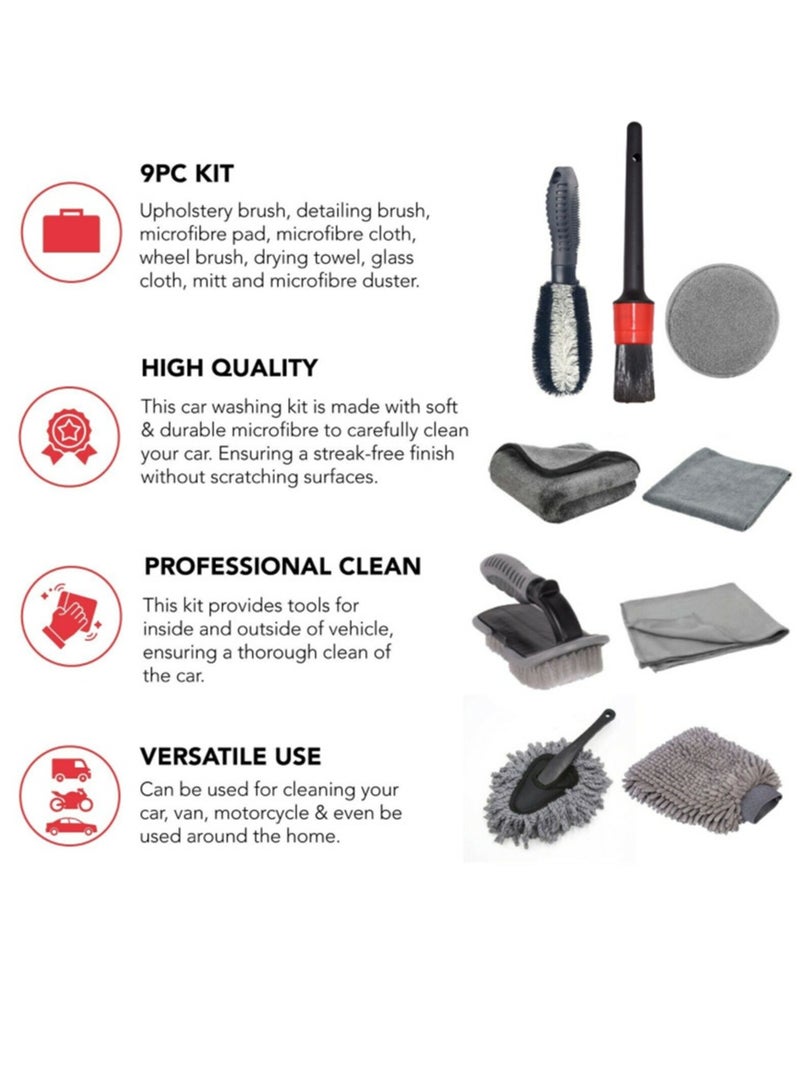 9-Piece Professional Car Cleaning Kit is designed to provide materials for a professional clean finish of the interior and exterior of the vehicle.