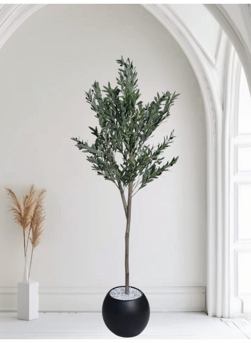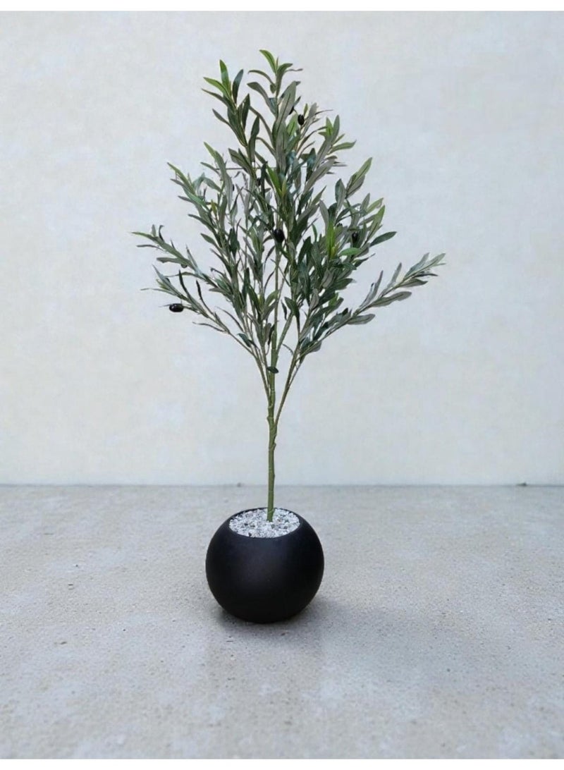 A fruitful olive tree with a large, attractively designed black pot in various sizes.