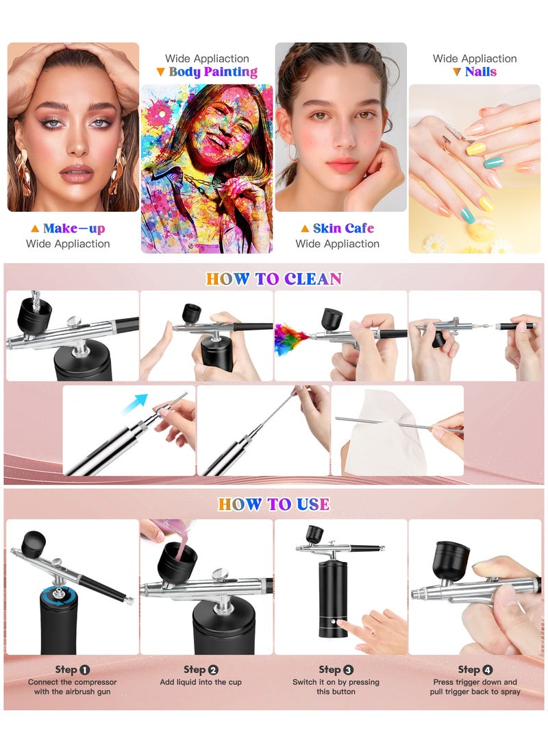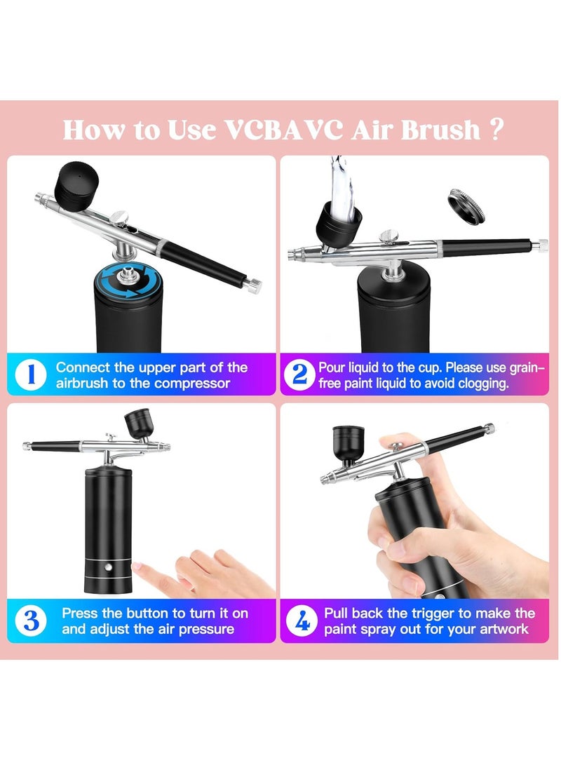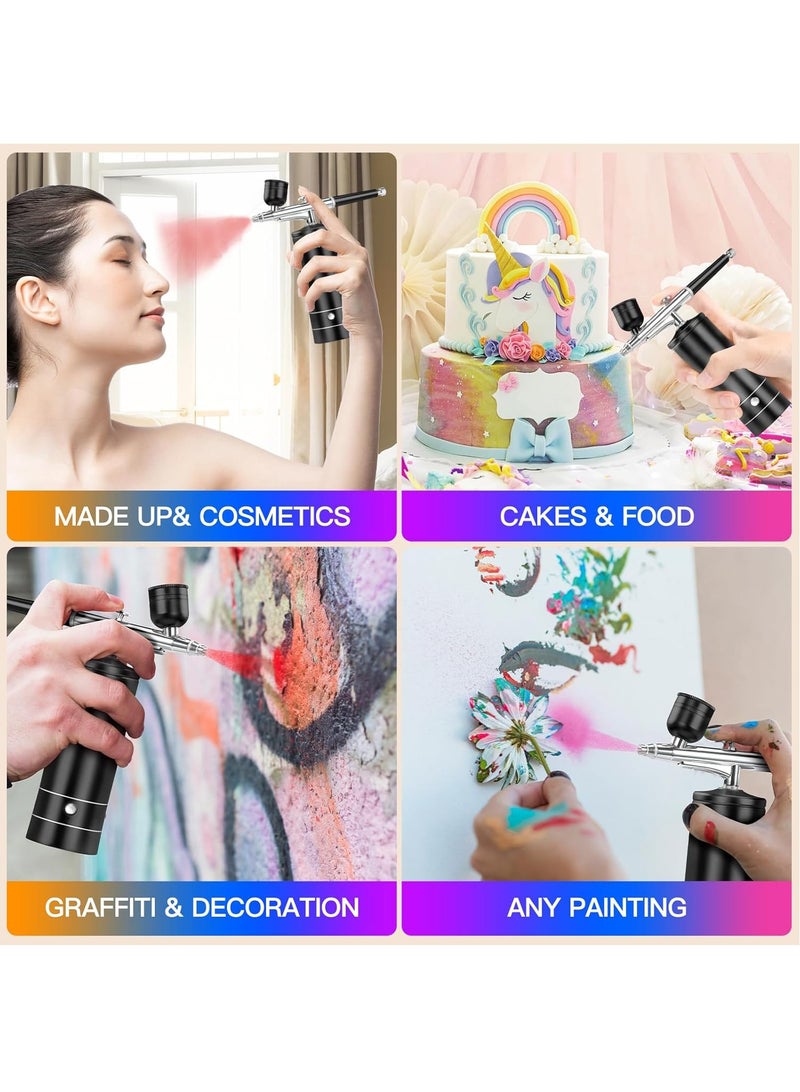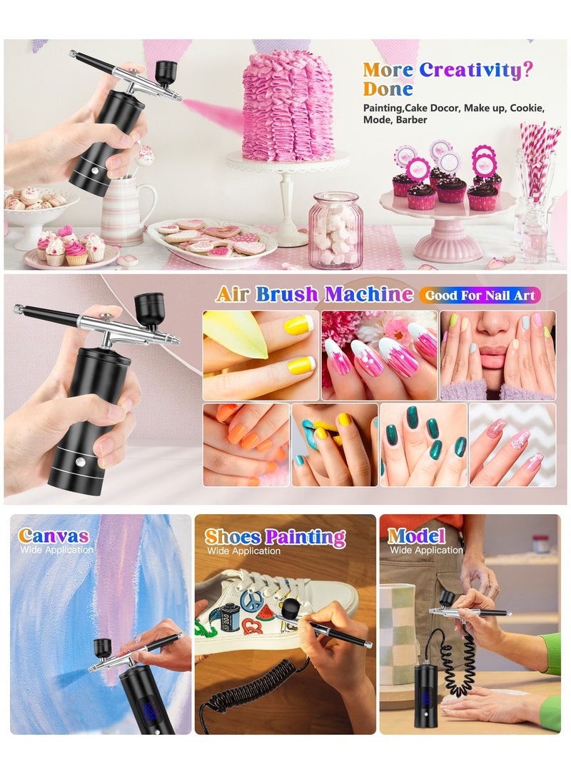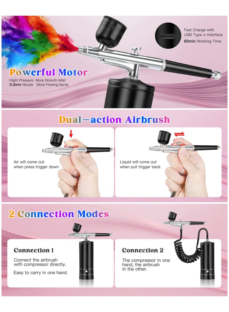 Airbrush Kit with Compressor 48 PSI High-Pressure, Non-Clogging Air brush Set Cordless Rechargeable with 0.3mm Nozzle and Cleaning Brush for Nail Art, Makeup, Painting, and Cake Decorating