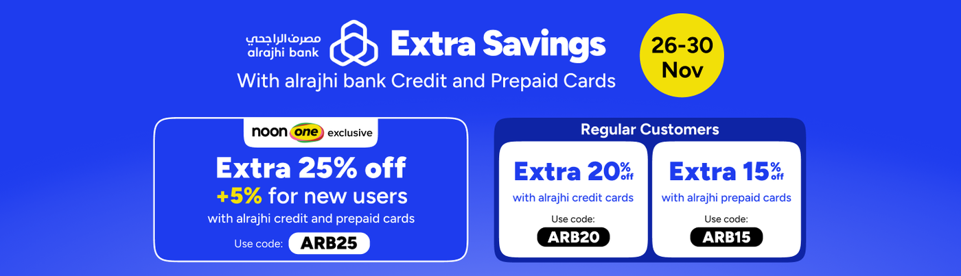 Offer valid for alrajhi Credit cardholders on 2 orders from noon.com using code ARB20 and prepaid cardholders using promo code ARB15