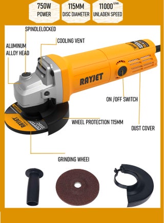 Powerful Motor Performance: This angle grinder is equipped with a 750W motor, which is designed for tough metal grinding and cutting tasks, ensuring powerful performance in a variety of projects.