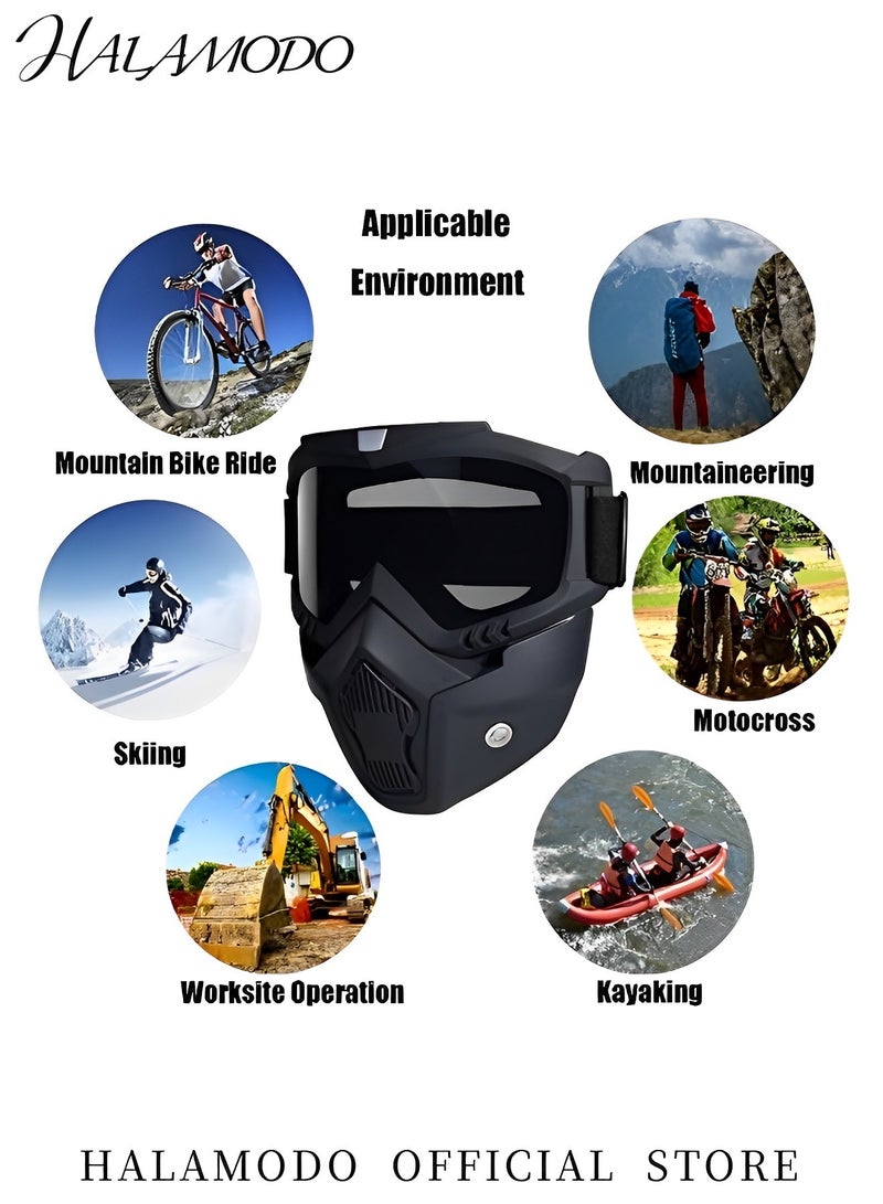 【Adjustable and Detachable Goggles】 This full-face mask comes with detachable and adjustable goggles that can be customized for comfort and optimal fit. The goggles are easy to remove, providing flexibility for different outdoor activities or when you need to clean the mask. The adjustable strap ensures a secure fit for all head sizes.