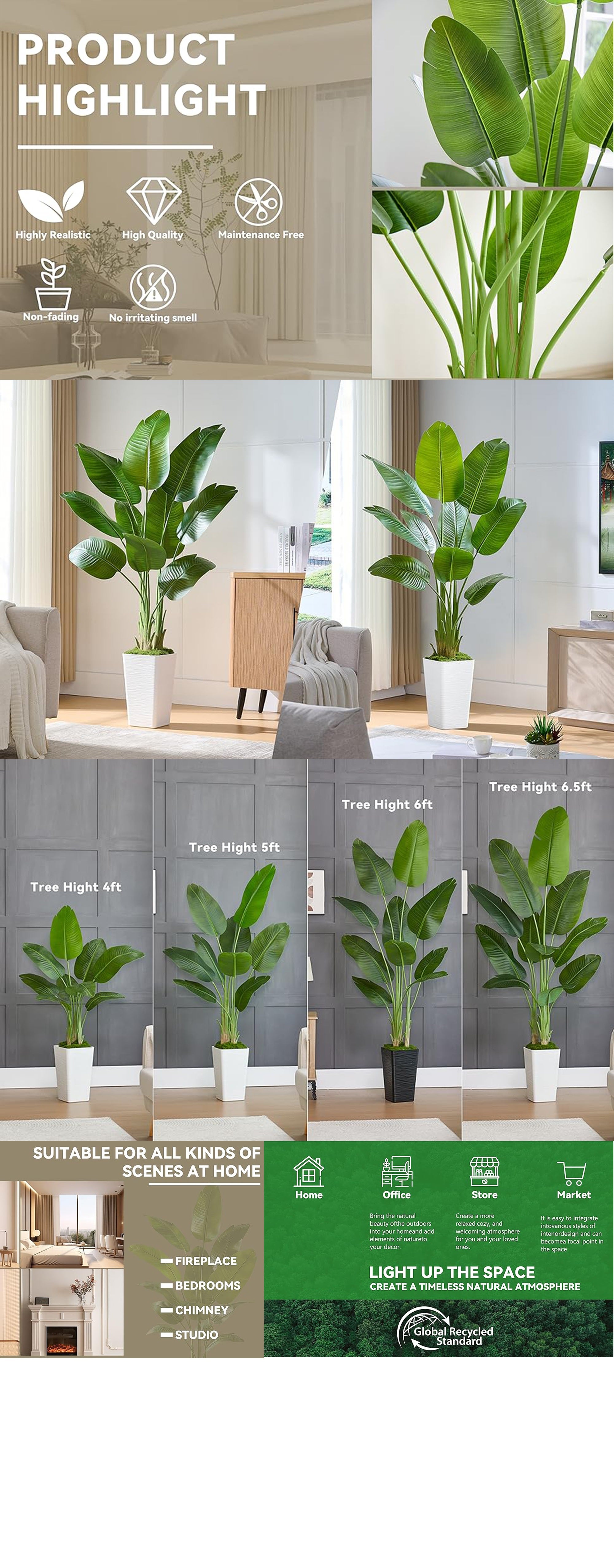 Create a timeless natural atmosphere, perfect replacement for real trees, suitable for any place decoration, bathroom, living room, office, entryway.