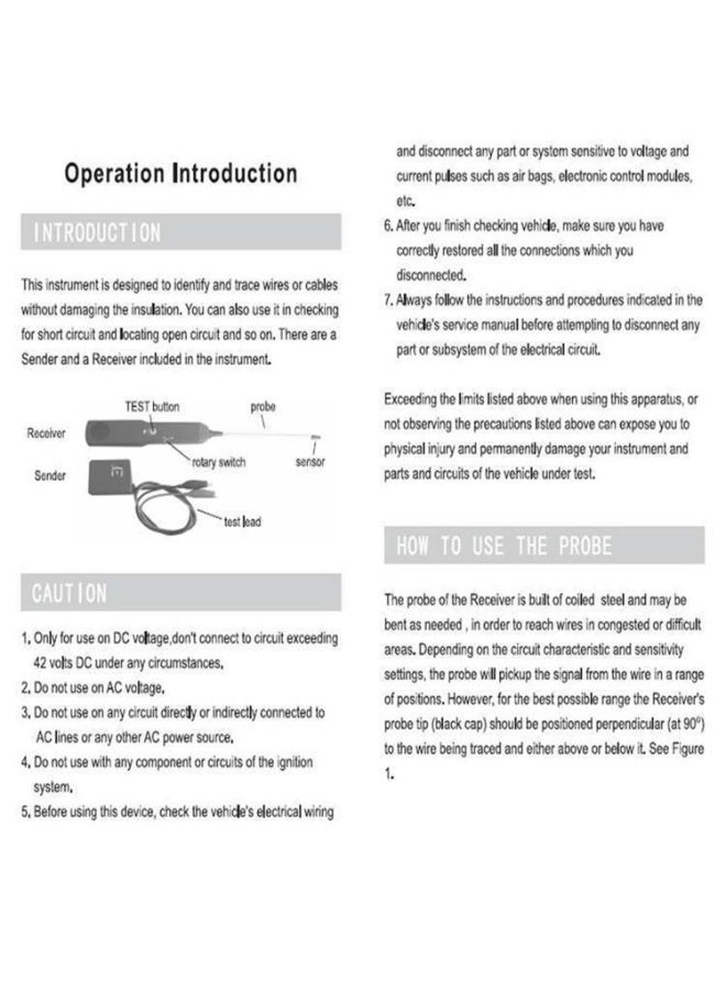 | What's In The Box | 1 x Car Tester 1 x User Manual 1 x Storage bag |