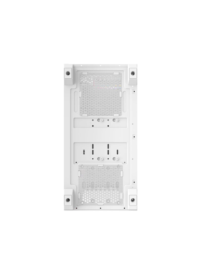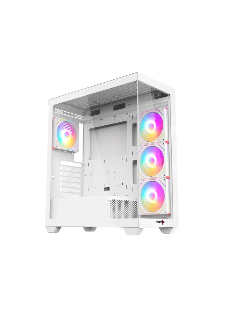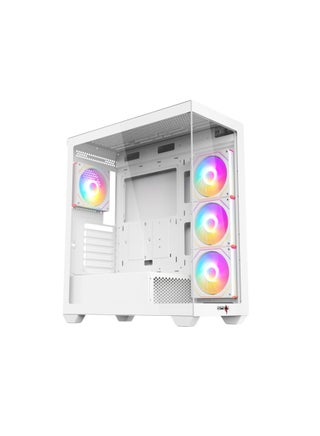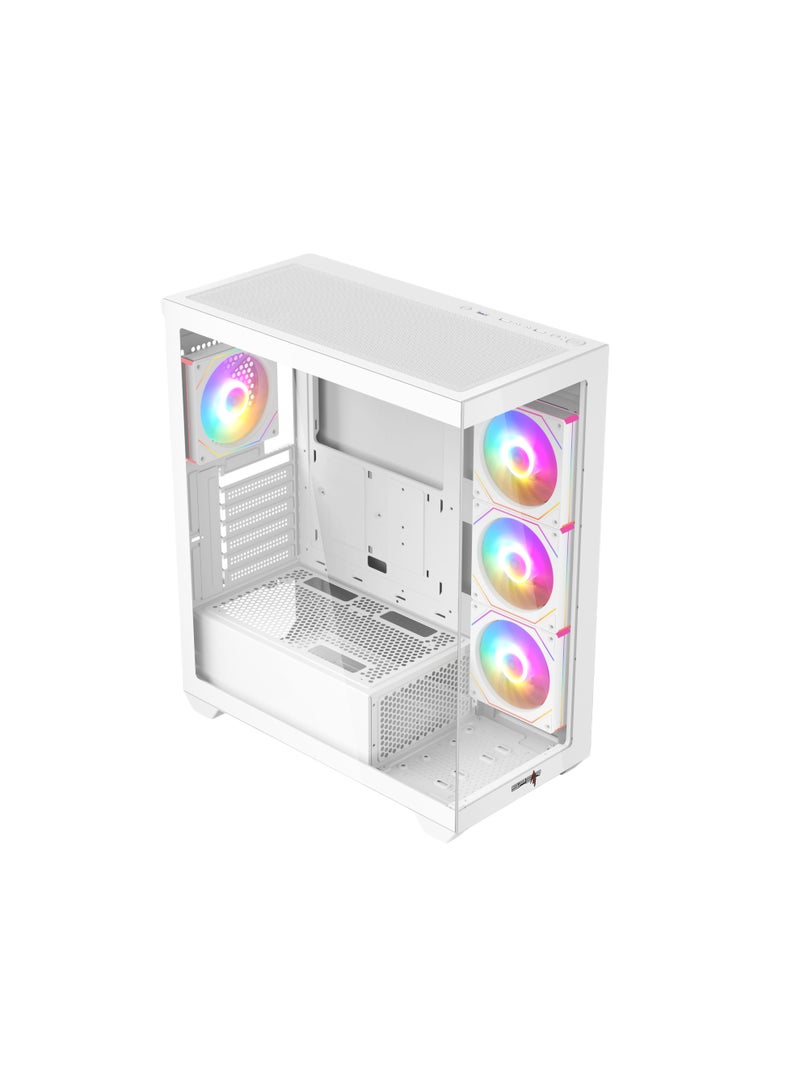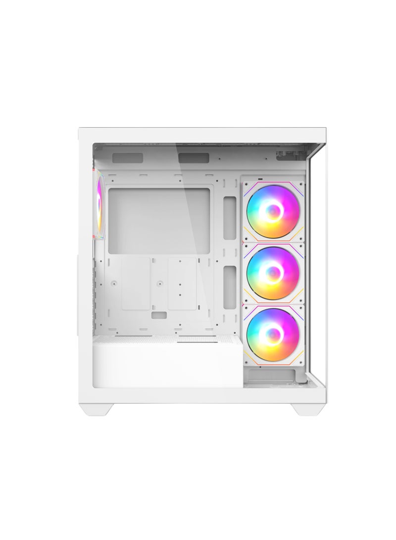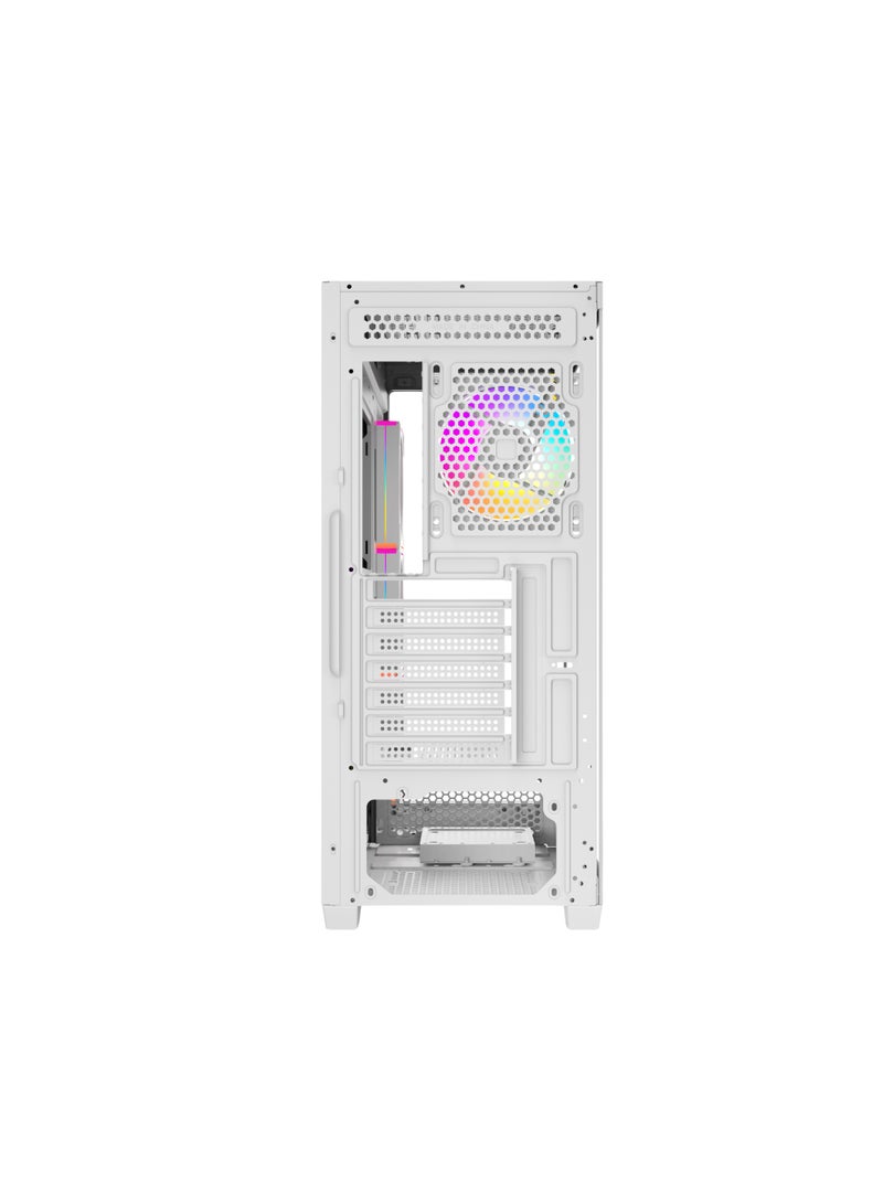 Featuring a sleek black and white design with a full-size tempered glass side panel, this case comes pre-installed with 4 RGB fans and a 10-port ARGB hub with motherboard sync and remote control for stunning lighting customization.