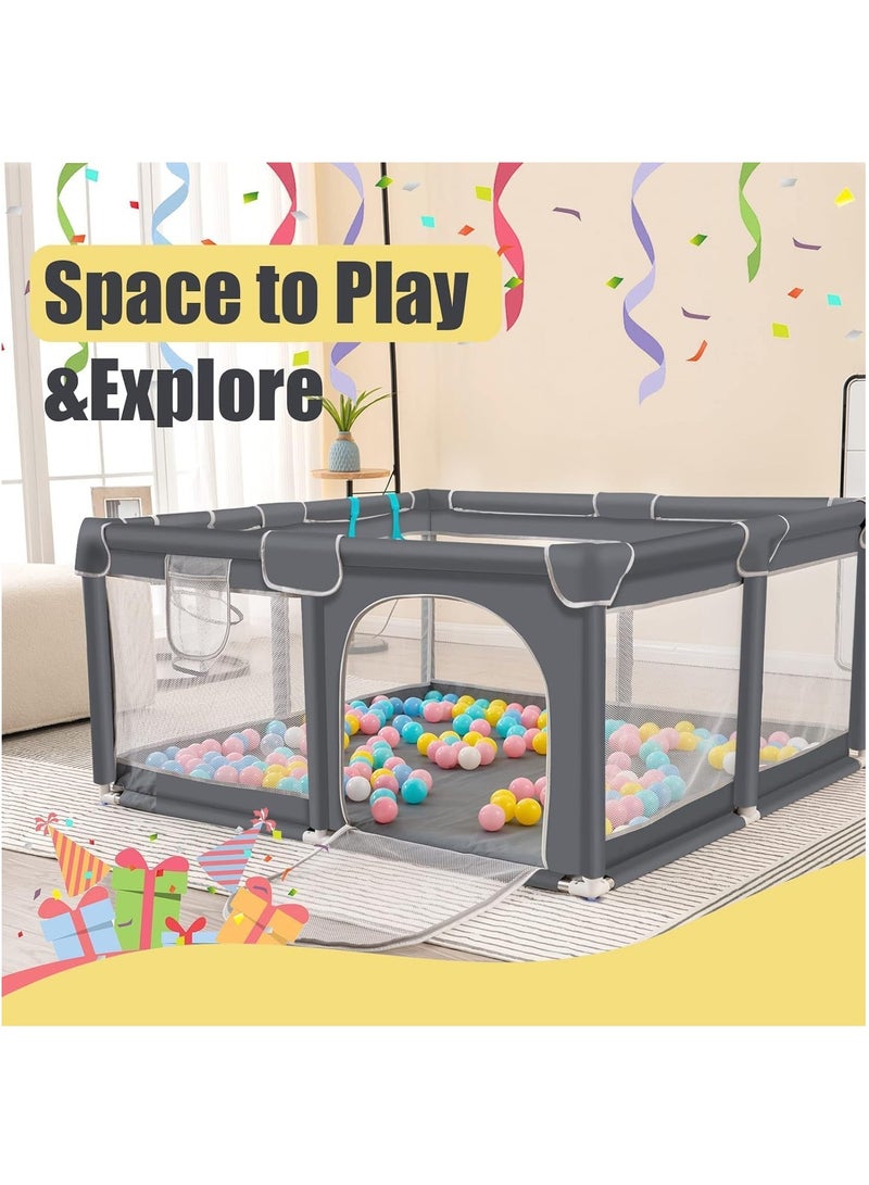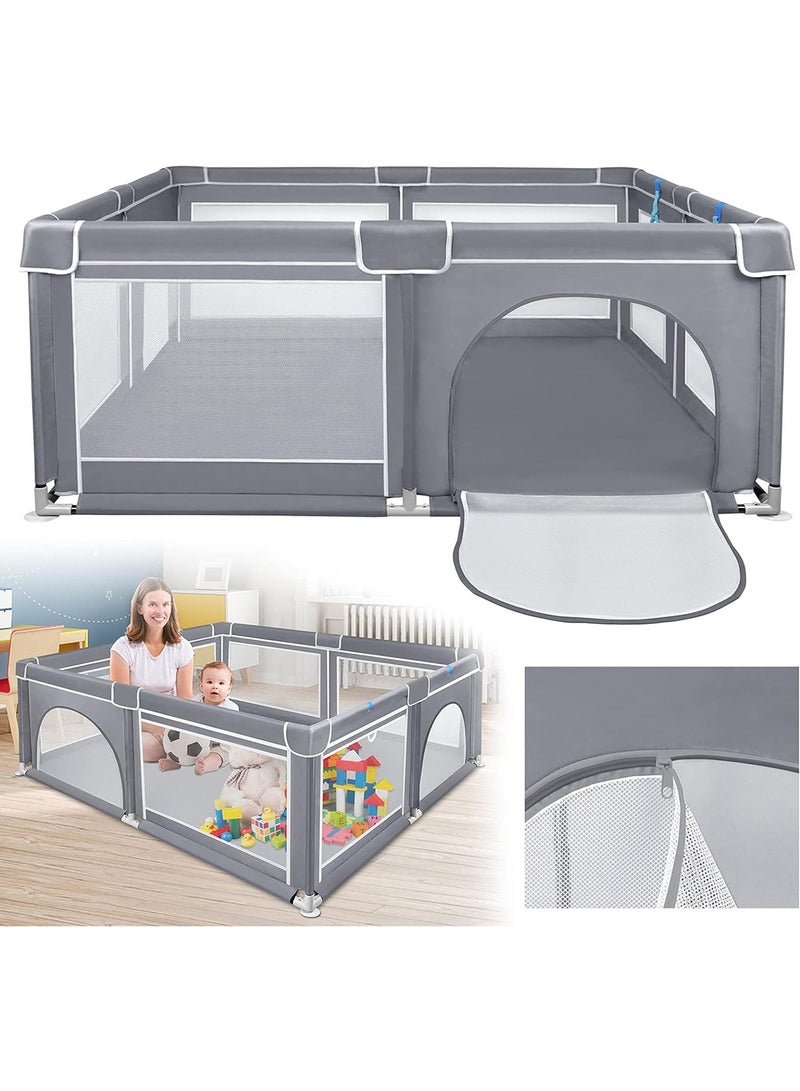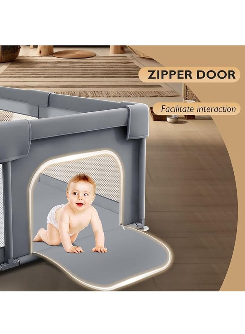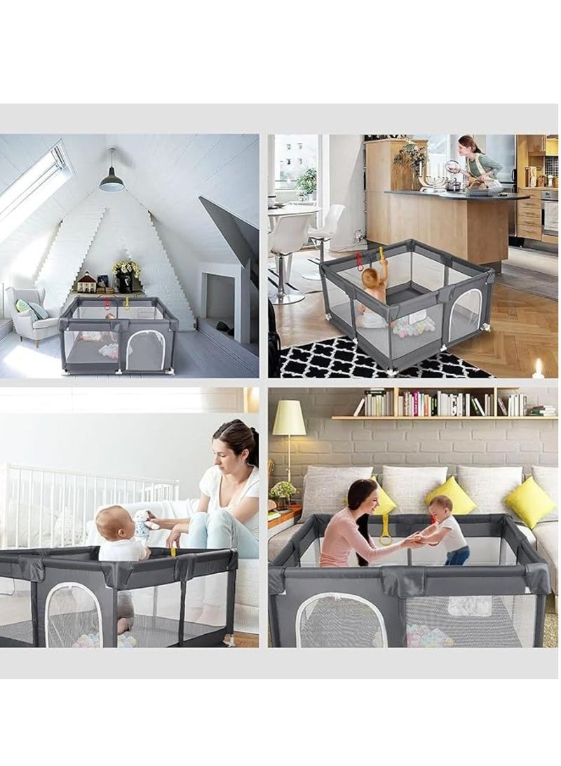 LARGE AND SPACIOUS: Measures in 200×200cm (dimensions are the outer diameter of the playpen), plenty of room for toys, friends or pets, and plenty of room to move around, the height of the playpen is high enough for baby to stand and walk, the yard place is for them to play 360° SECURITY PROTECTION: The portable playpen has a safety see-through mesh that lets you see your baby or let him see you! Made to protect your child from impact with a thickened seat belt buckle, high-quality Oxford fabric, four safety suction cups at each corner, and foam steel pipe. Quick and easy assembly: simple design. It is easy to install and remove, it can be done in a few minutes. See the installation instructions for more details. Please carefully read the installation instructions before moving forward as we have outlined the installation steps in the manual. Breathable visible mesh and storage pockets:To make sure the babies active with the visible range with the soft breathable mesh, Interact at any time to give your baby a sense of security. The adorable storage bag on the baby playpen makes it easy for parents to place small toys or baby diapers inside. A TIME SAFER:SKY-TOUCH baby playpen can effectively assist parents in protecting children while allowing children to freely explore the area. The heavy-duty oxford material is simple to clean; just hand wash it and use a damp cloth to mop it up.