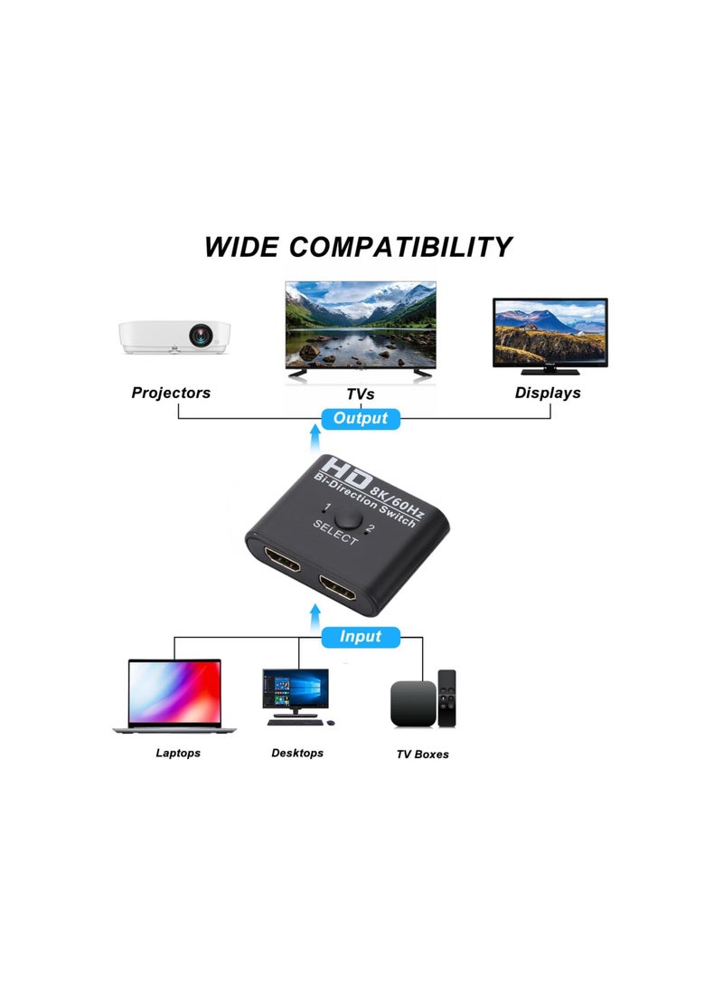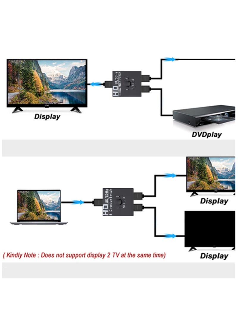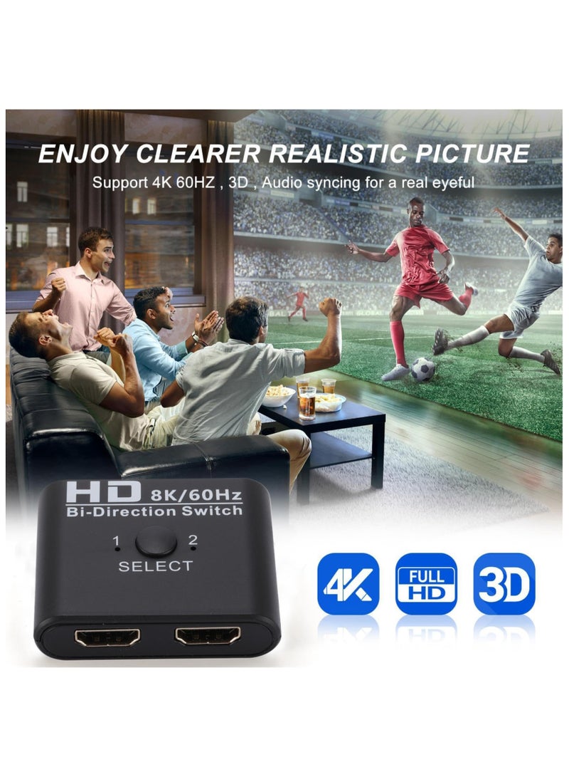 🔌 【Ultimate Convenience】: Experience the ease of our multimedia interface switcher. This bi-directional switcher supports resolutions up to 8K@60Hz and 4K@60Hz, allowing seamless switching between multiple devices for an enhanced viewing experience.