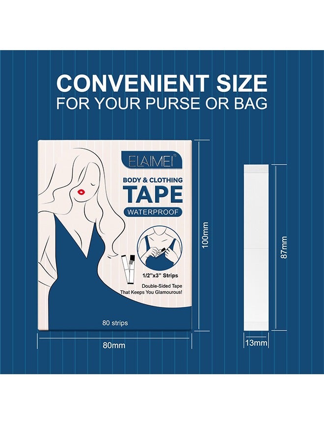 Body and Clothing Tape Waterproof ,Double Sided Body And Clothing Tapes, Strong Transparent Clear Body Tape Fashion Tape For Clothes, Dispenser Disposable And Waterproof Tapes For Women 80 Strips