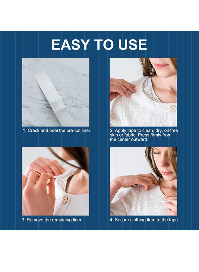 【Easy To Use】Use stick the tape between the skin and clothes or between clothes and clothes, it can play a fixed role, its transparent design blends with various skin tones.