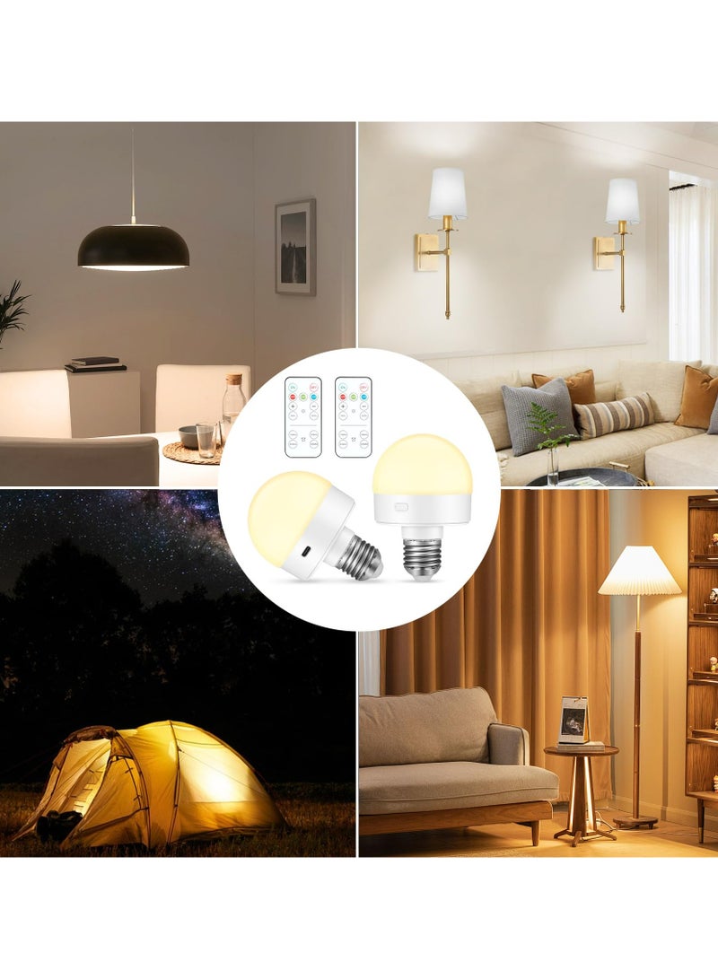 CMGTYYD E27 LED Light Bulbs, 2 Pack Dimmable & Rechargeable Bulbs with Remote Control, 3 Color Temperature, Timing Function, Detachable & Magnetic Battery Operated Light Bulbs