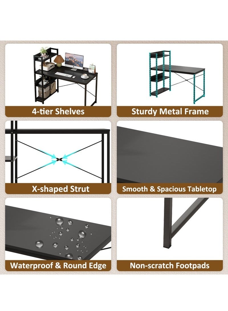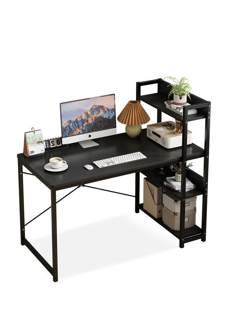 This is a multifunctional workstation that integrates computer desk, bookcase and bookshelf, suitable for study, bedroom, office and so on. The 4-level storage rack design makes this desk ideal for small rooms and maximizes your home office workstation space. The desk provides more spacious space for laptops, PCS, keyboards, and desk accessories. Make sure you have enough space to work or study comfortably. The table top is 72cm high with plenty of leg room for rest and storage. The computer desk is made of high quality Mdf board and metal frame. The 2.0cm wide iron frame is made with heavy duty powder coating to ensure stability and durability and can support 415 LBS. Choose our spacious and stylish computer desk. Upgrade your productivity and provide you with a functional and organized workspace that becomes your ideal companion.