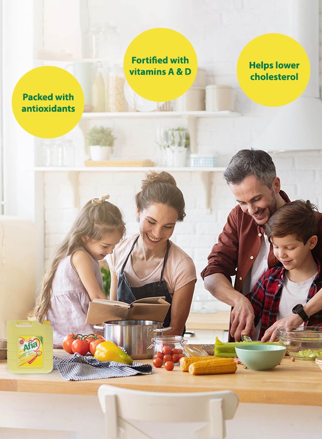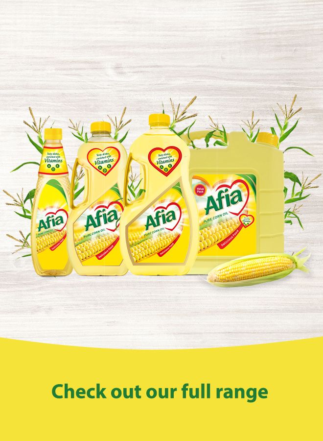 Introducing Afia's Corn Oil, the ultimate culinary ingredient that enhances your cooking experience. From careful sourcing of premium corn kernels to meticulous processing, this oil is crafted exclusively to preserve the corn's natural richness and sweet flavor, making it the perfect ingredient to complement a wide array of dishes. This Pure Corn Oil is a trusted choice, recommended by nutritionists for its health benefits. Perfect for vegetarians and non-vegetarians, it's high in antioxidants and fortified with vitamins A and D, promoting overall well-being. Being a versatile oil with a high smoke point from between 230–238 °C, it's perfect for a wide range of recipes. Its flavor and ability to withstand high temperatures make it the preferred choice for high-heat, all-purpose cooking. Explore Afia's complete range of cooking oils, from sunflower oil to canola oil, each offering alternative flavor profiles that open up a world of culinary possibilities in your kitchen. Elevate your cooking and embrace a healthier lifestyle with Afia's Corn Oil today!